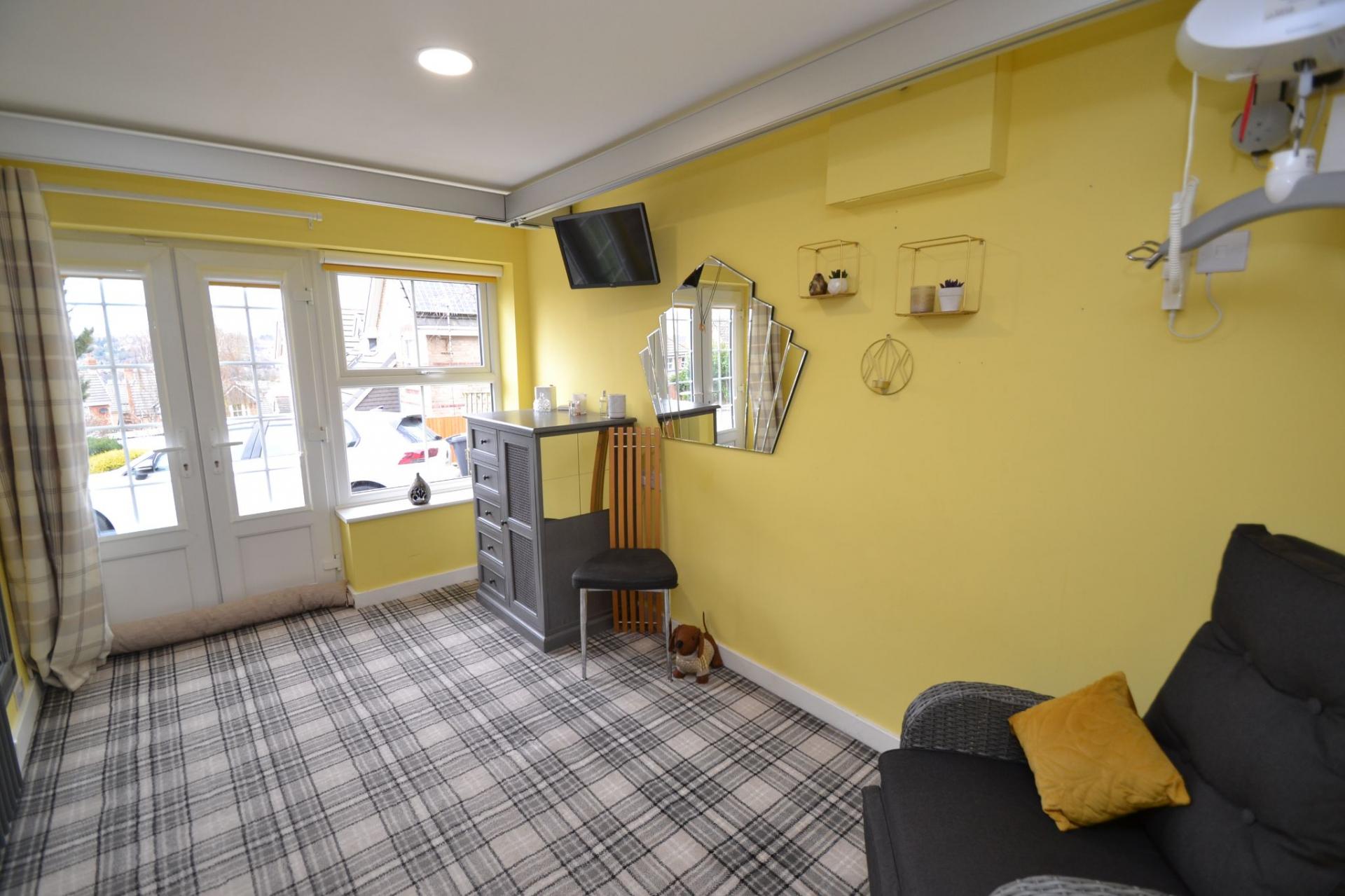 Bedroom 4: 3.78m x 2.41m (12'4 x 7'9). Upvc dg front French doors plus window, upright contemporary grey radiator, sliding door leads onto a:-