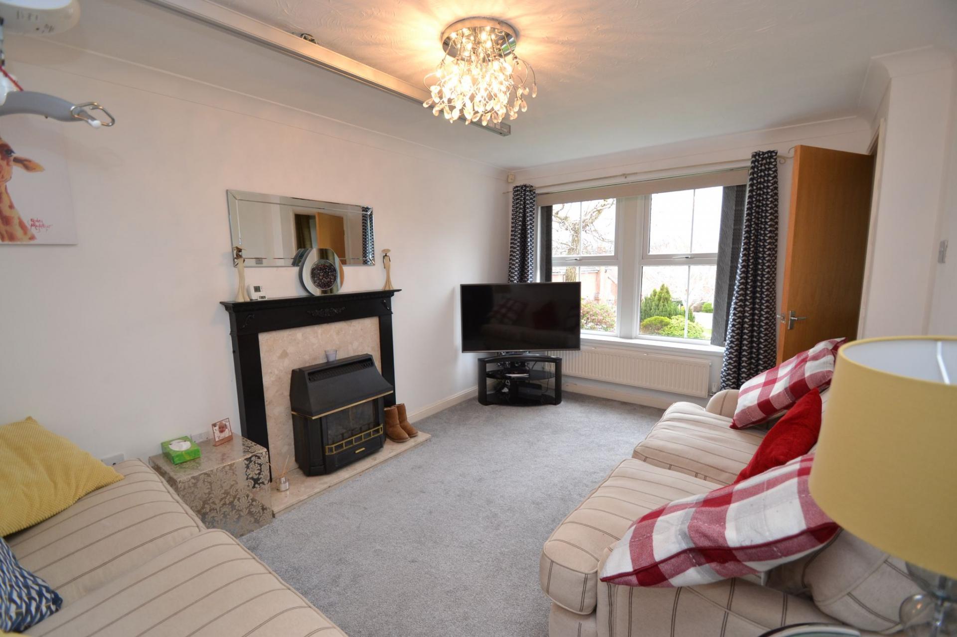 Lounge: 4.57m x 3.01m (14'10 x 9'8). Mullion style Upvc dg windows to front, radiator, coving, mahogany fireplace surround with marble back & hearth plus gas fire.