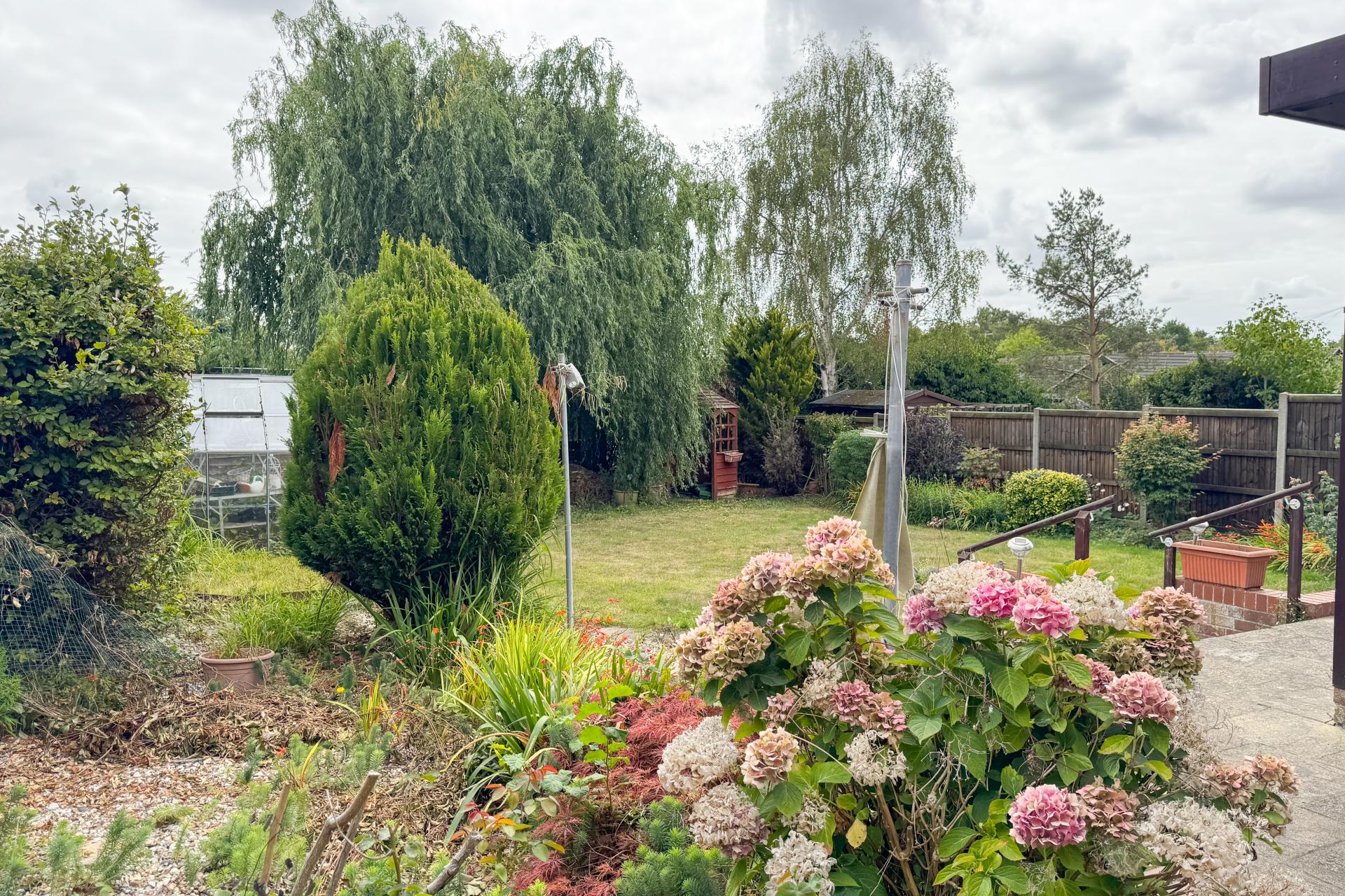 Outside, the garden is laid mainly to lawn with established shrub borders, a patio, and rear access. The setting is peaceful and private, backing onto other gardens.