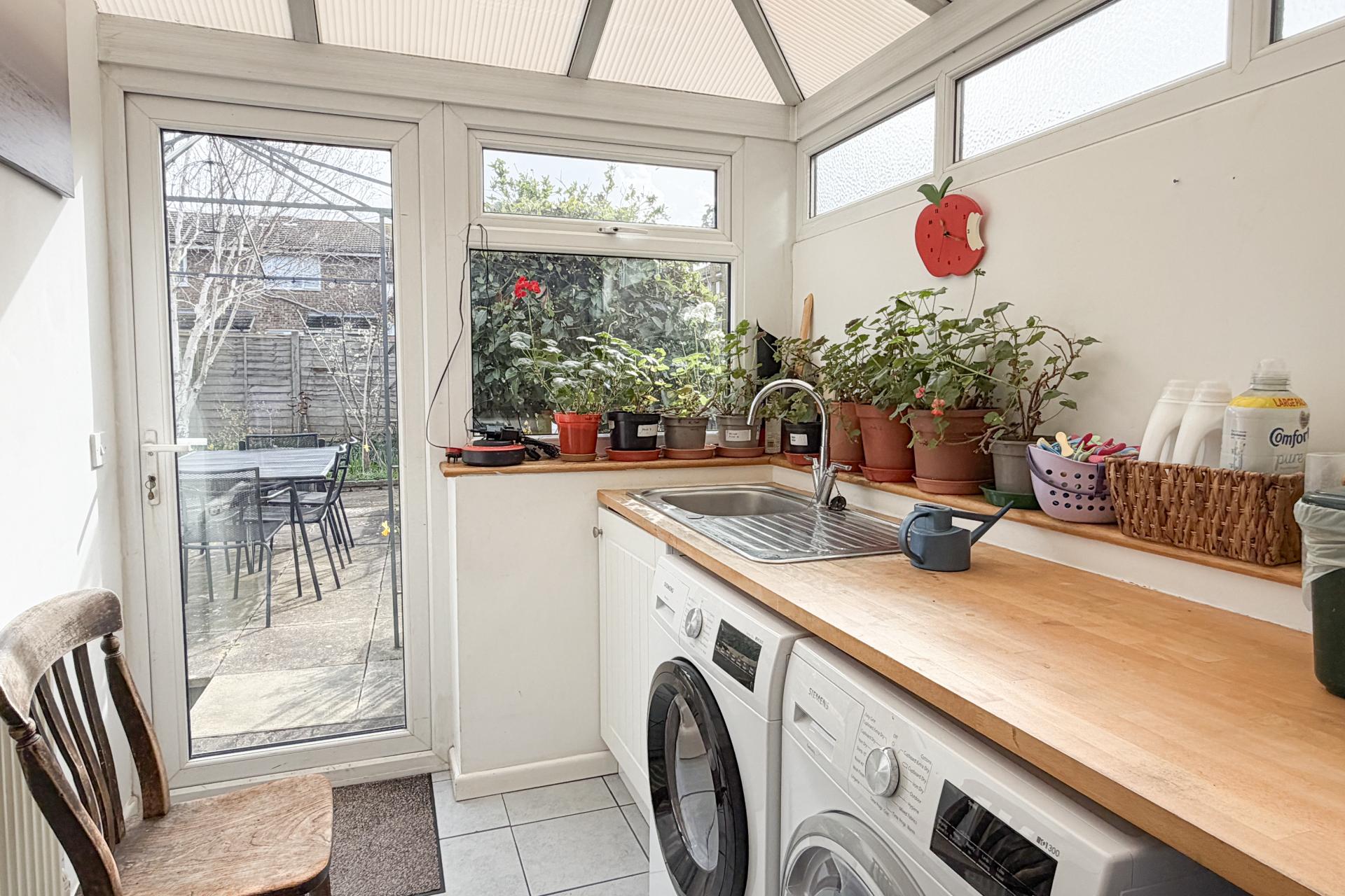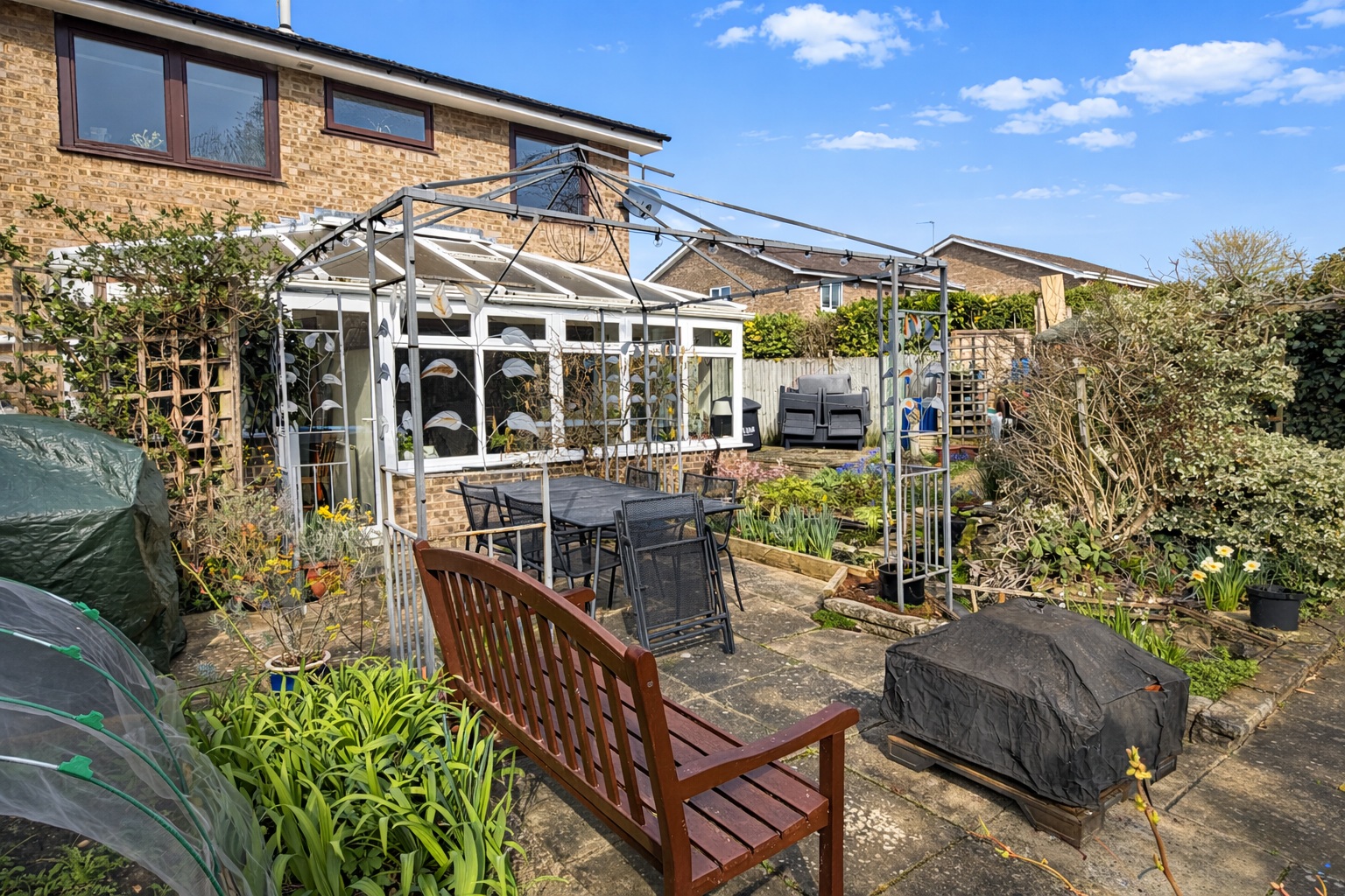 From the dining area, the property continues into a bright conservatory overlooking the garden, providing a pleasant additional reception space and a lovely spot to enjoy the sunshine throughout the day.
