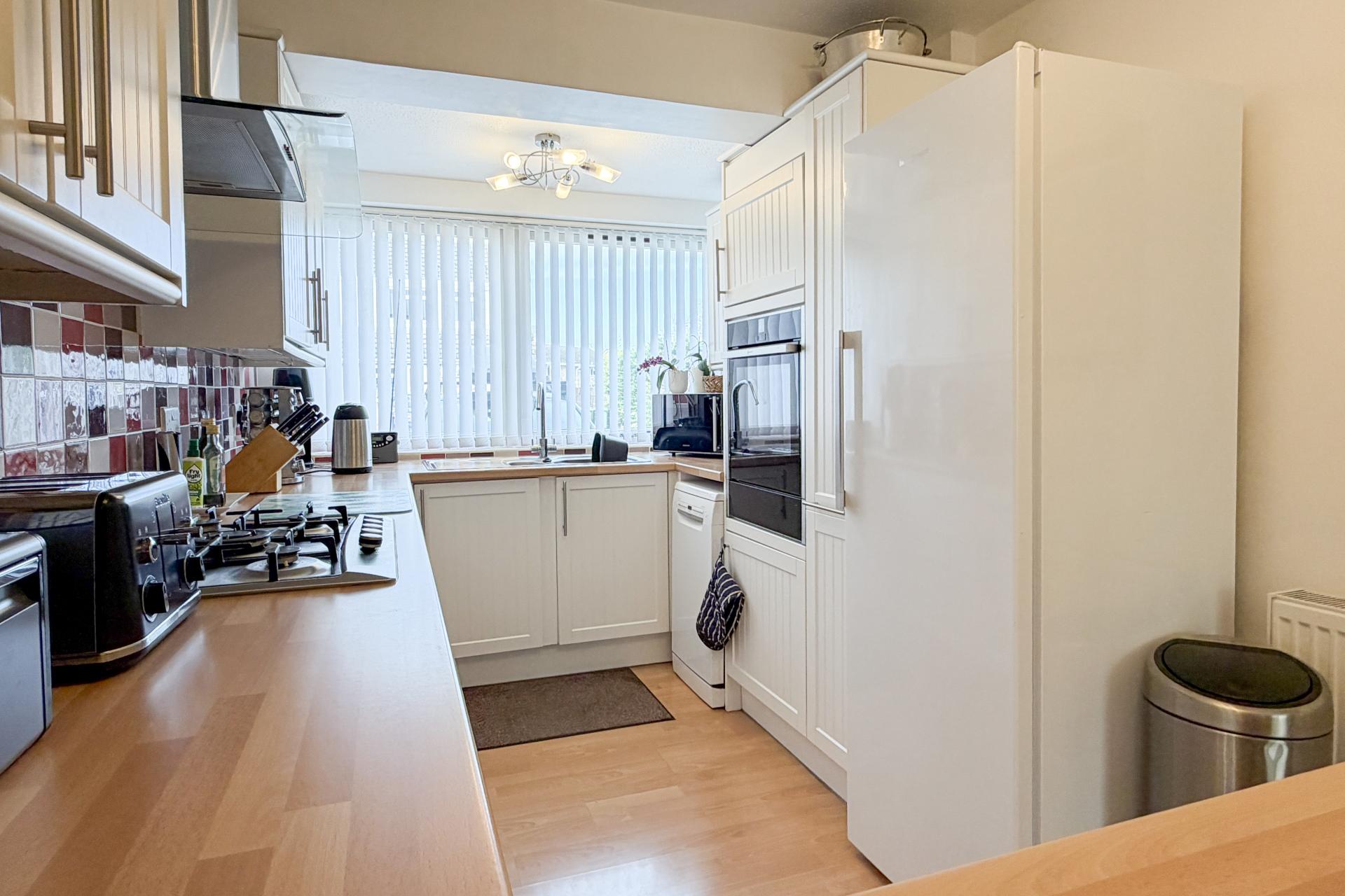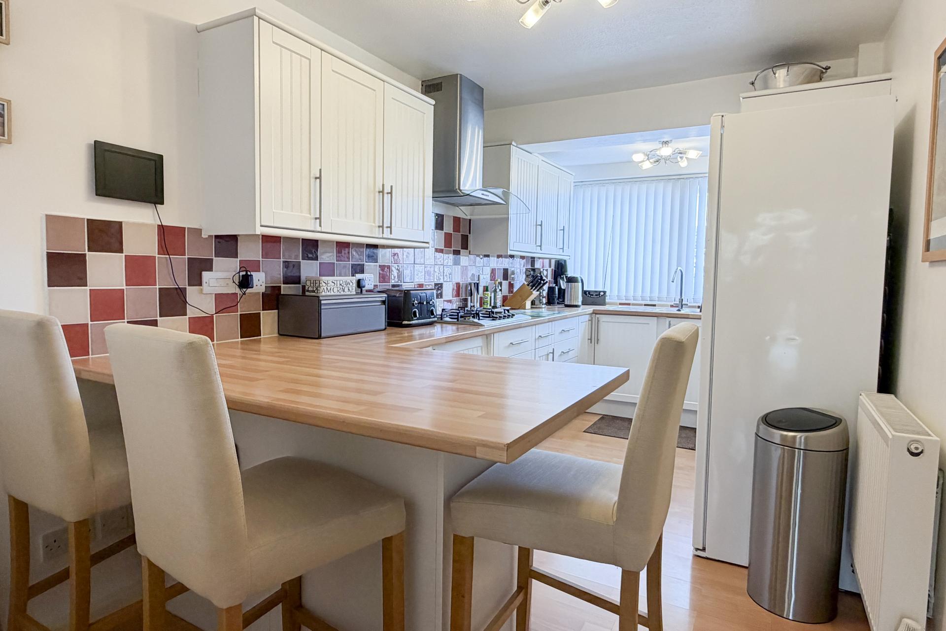 The kitchen is fitted with a range of white wall and base units providing ample storage and worktop space, together with a gas hob and integrated cooker. Positioned at the front of the property, the room enjoys plenty of natural light and features a breakfast bar which connects seamlessly to a cosy snug , a relaxed informal space ideal for family life. Beyond the snug is a useful utility room with space for a washing machine and tumble dryer, together with direct access to the rear garden.