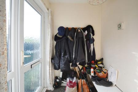 The ground floor features a semi open-plan layout with clearly defined sitting and dining areas. The kitchen is positioned at the rear of the property and opens out to an enclosed rear garden. The entrance leads into a large porch with space for coats and shoes, and there's a good-sized understairs cupboard offering additional storage.