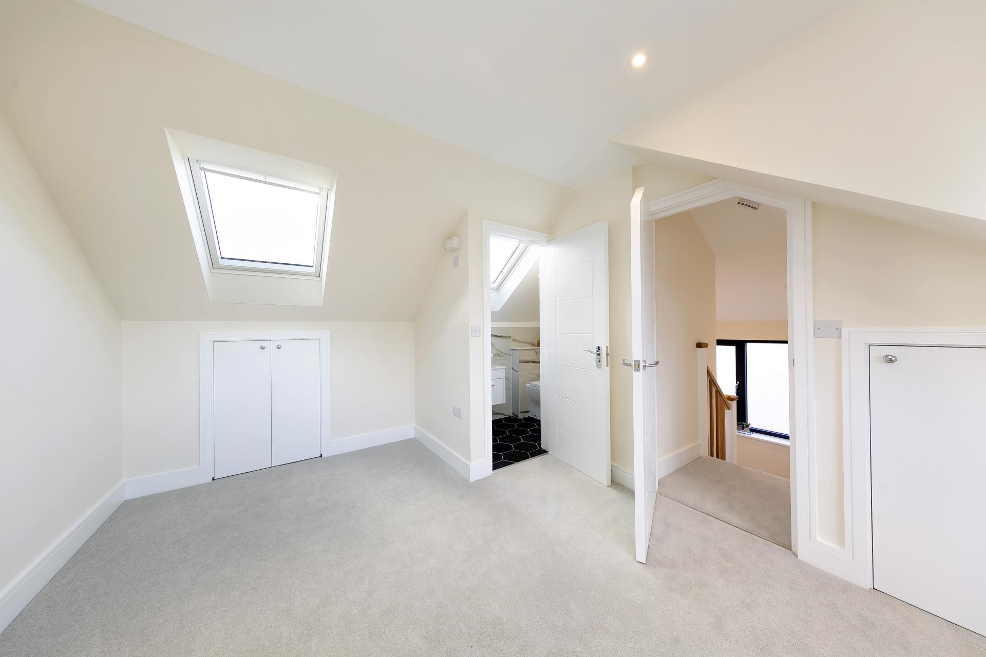 The top floor reveals a further double bedroom and ensuite shower room. It should be noted this room boasts a useful carpeted storage space, in addition to front eaves storage. EPC B