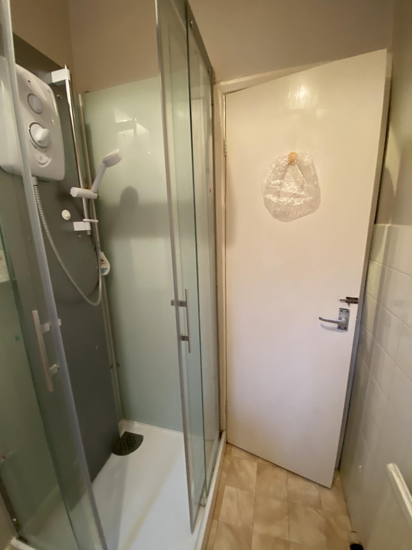 Shower room 1.48m x 2.04m with electric shower, WC and wash hand basin