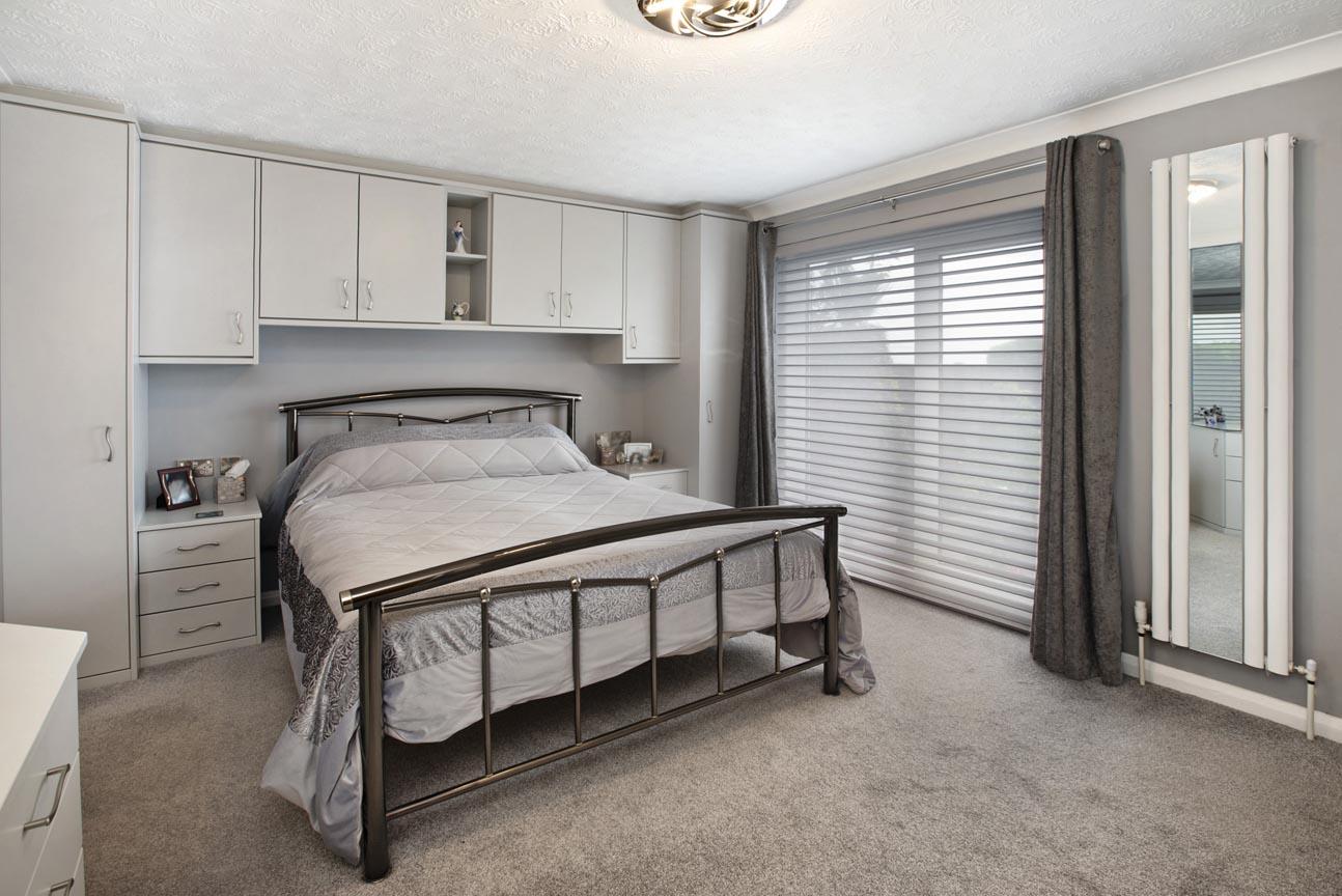 BEDROOM 1: uPVC double glazed sliding patio doors enjoying lovely countryside views, fitted bedroom furniture comprising two double wardrobes, two single wardrobes, shelving, two bedside cabinets, cupboards over, dressing table, radiator. Door to: