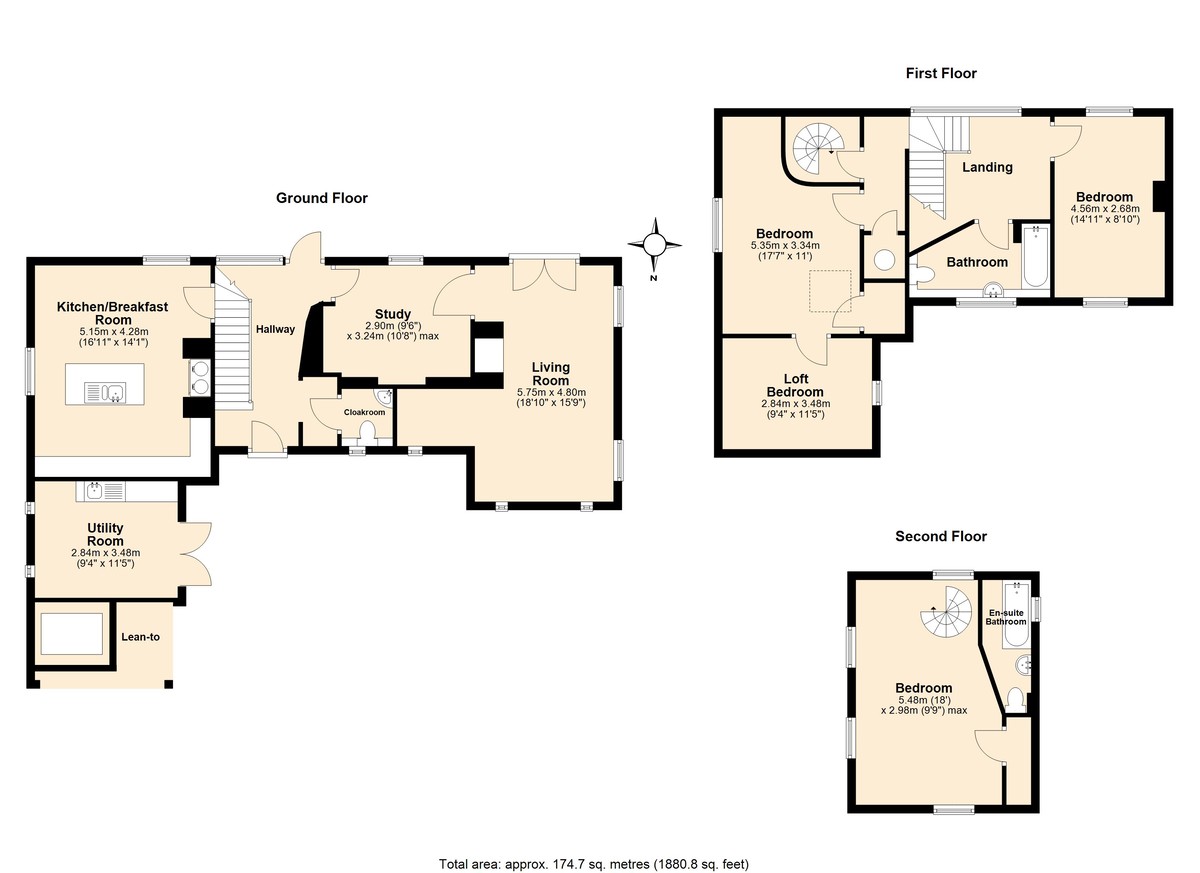 - Two further double rooms, one with adjoining child's room/ study