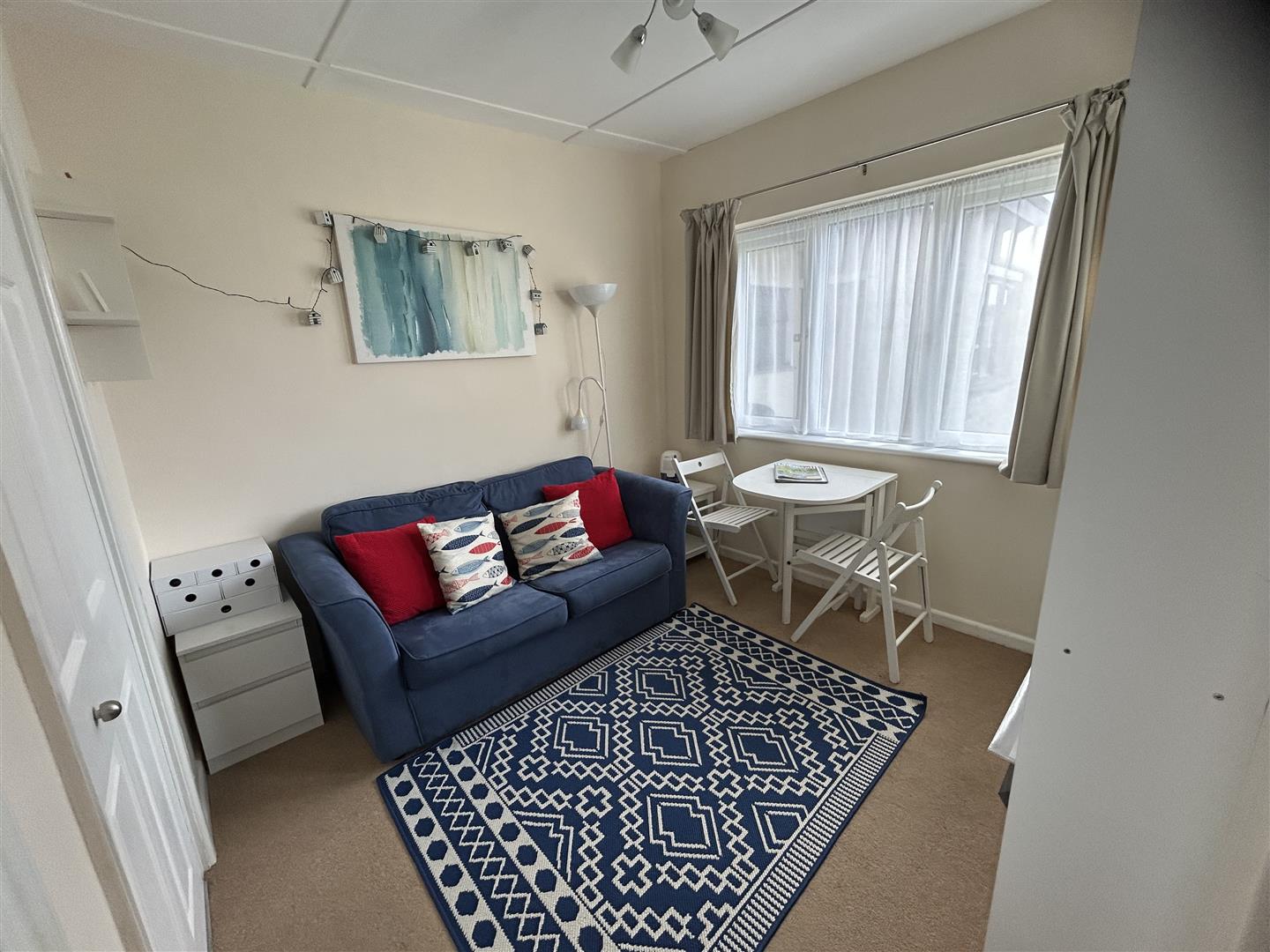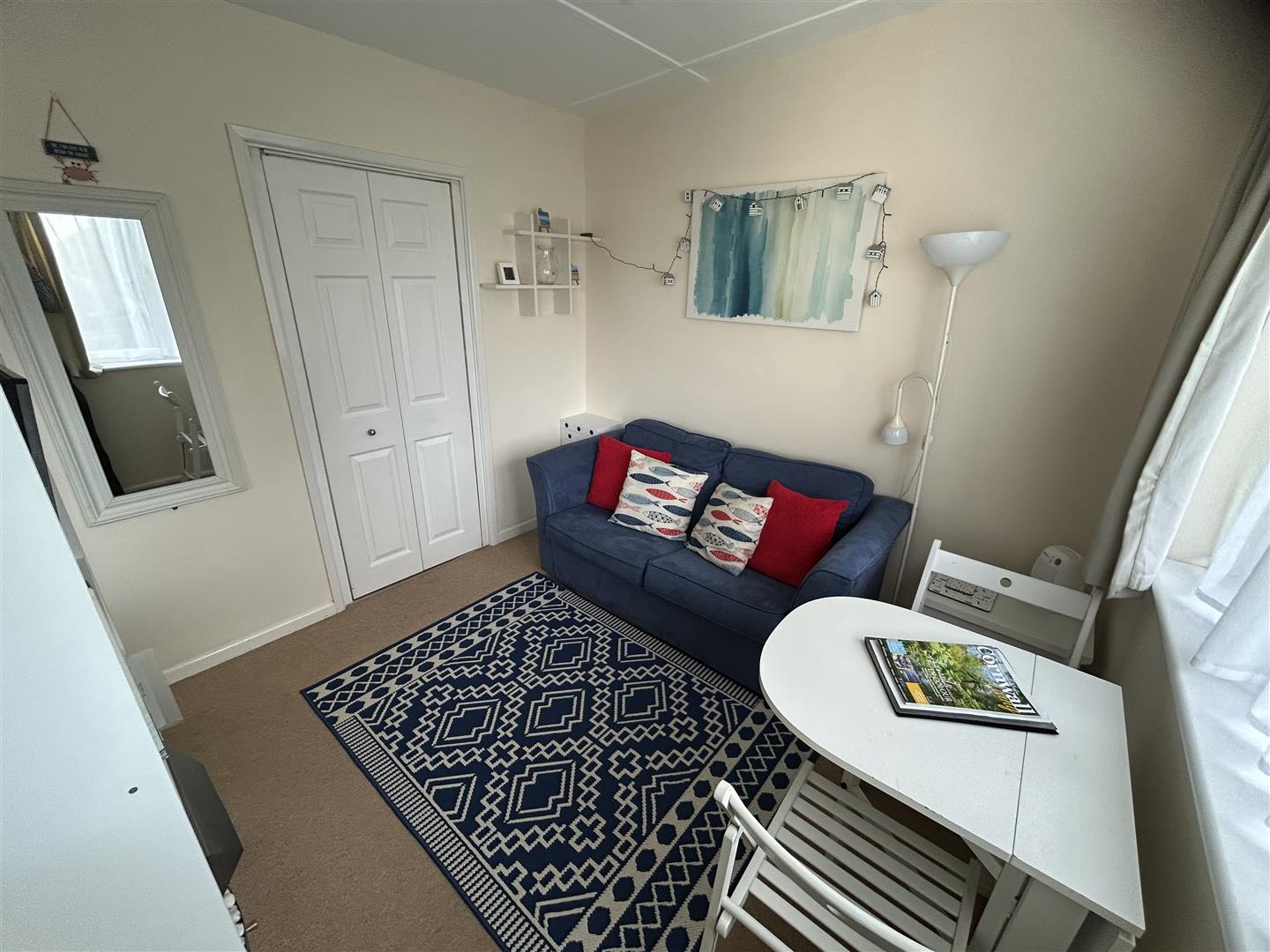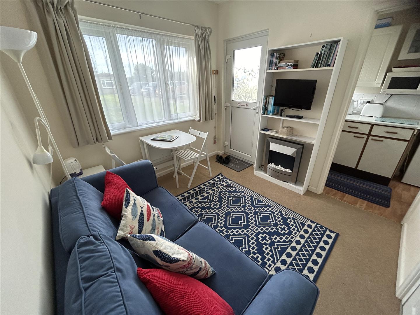 Open Plan Sitting/Dining Room - 2.77m x 2.57m (9'1" x 8'5" ) - Enjoying a sunny aspect with mounted shelving, tv point, window overlooking the communal grounds and parking area to the front. There is an opening to the kitchen and a folding door to