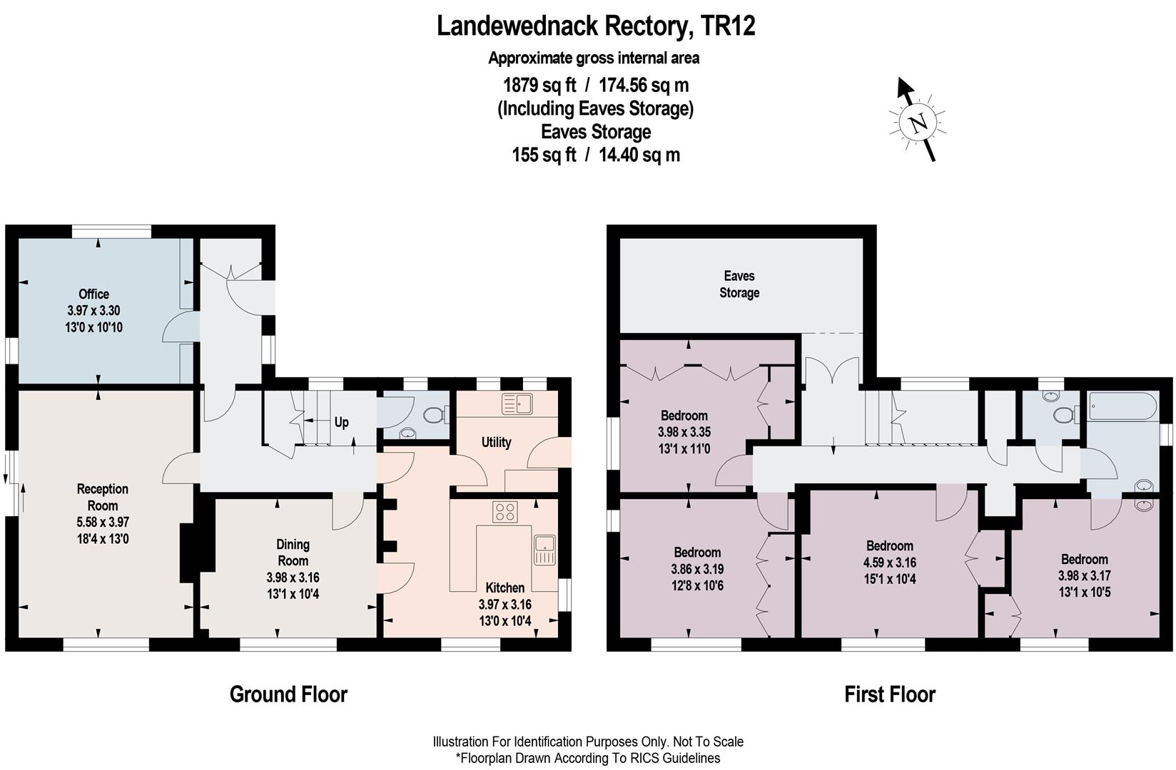 The accommodation briefly comprises a side entrance leading into an entrance area and utility room, a fitted kitchen, separate dining room, and a generous lounge. There is also a rear porch, a study/fifth bedroom, and a ground floor W.C.