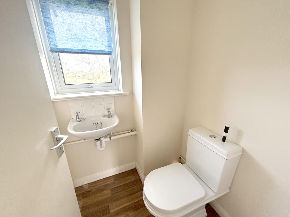 Cloakroom - With dual flush W.C., pedestal wash hand basin, obscure window to the rear aspect.