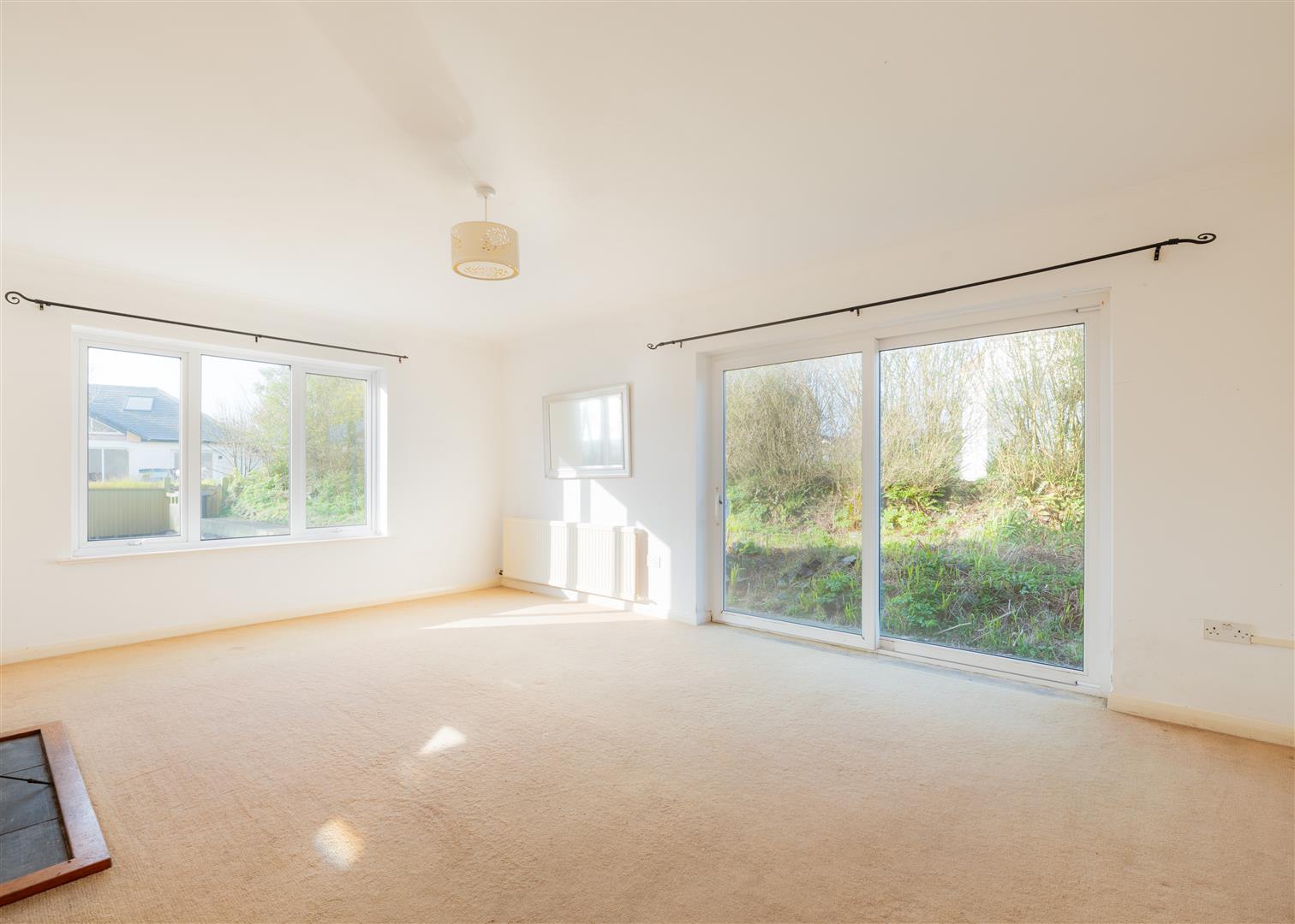Lounge - 5.6 x 4.0 (18'4" x 13'1") - A generous dual aspect space with window to the front aspect and sliding glazed patio door out onto the side and garden. There is a open fireplace on a stone hearth and surround with wood mantle over.