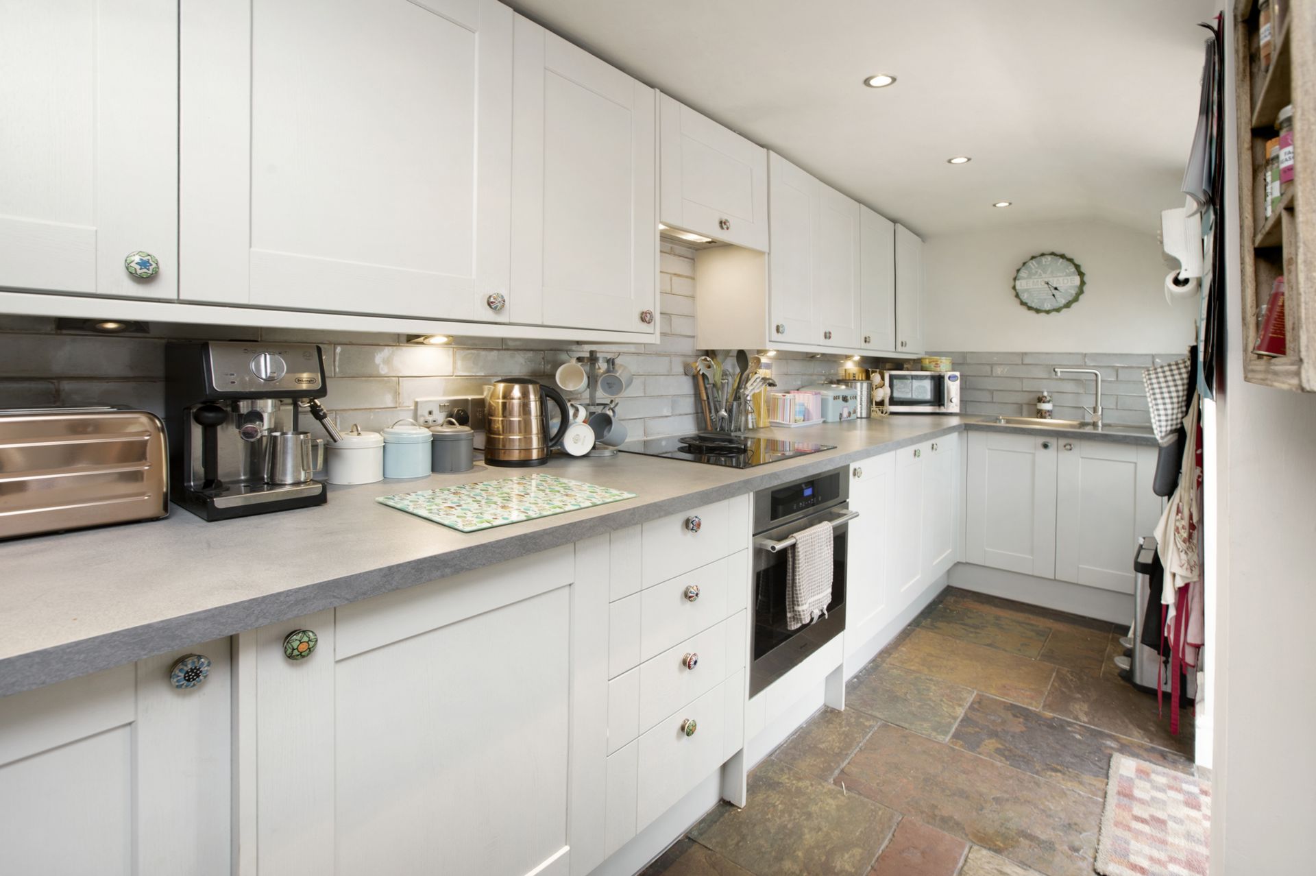 OUTSIDE: To the front of the property is a paved area suitable for parking for a small car. To the rear of the property directly accessed from the kitchen is an open covered seating area that is paved and provides an excellent entertaining space. from the courtyard a rear access gate leads down a communal pathway to the main body of the garden. The main garden is deceptively spacious and mainly laid to lawn with a good degree of privacy. the garden has an abundance of mature trees, plants and shrubs and a wonderful summer house/garden studio with wood burning stove that offers additional space for a variety of uses. To the side of the neighbouring property is a driveway parking space.