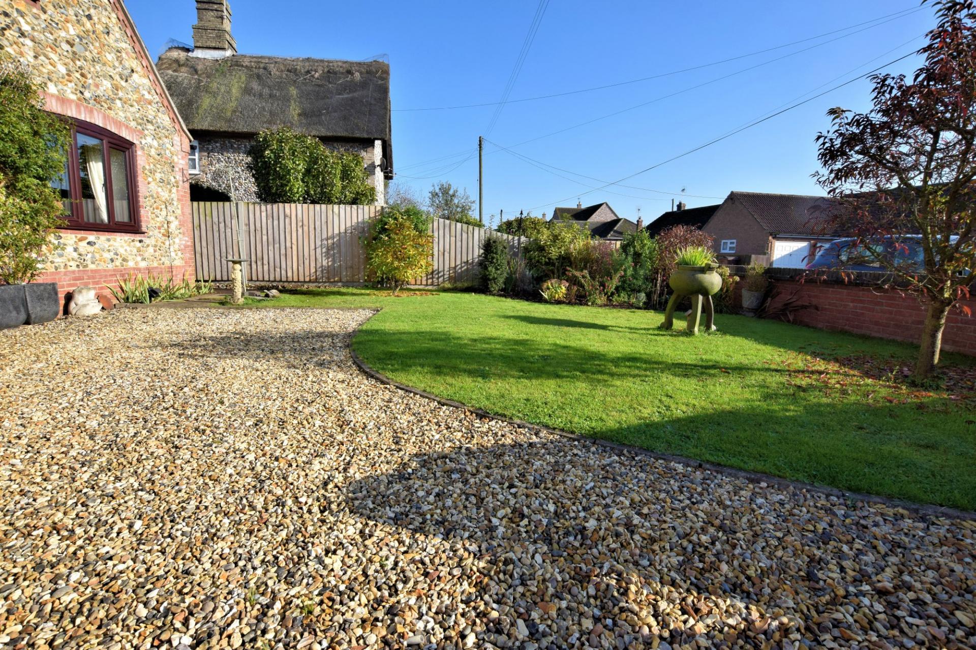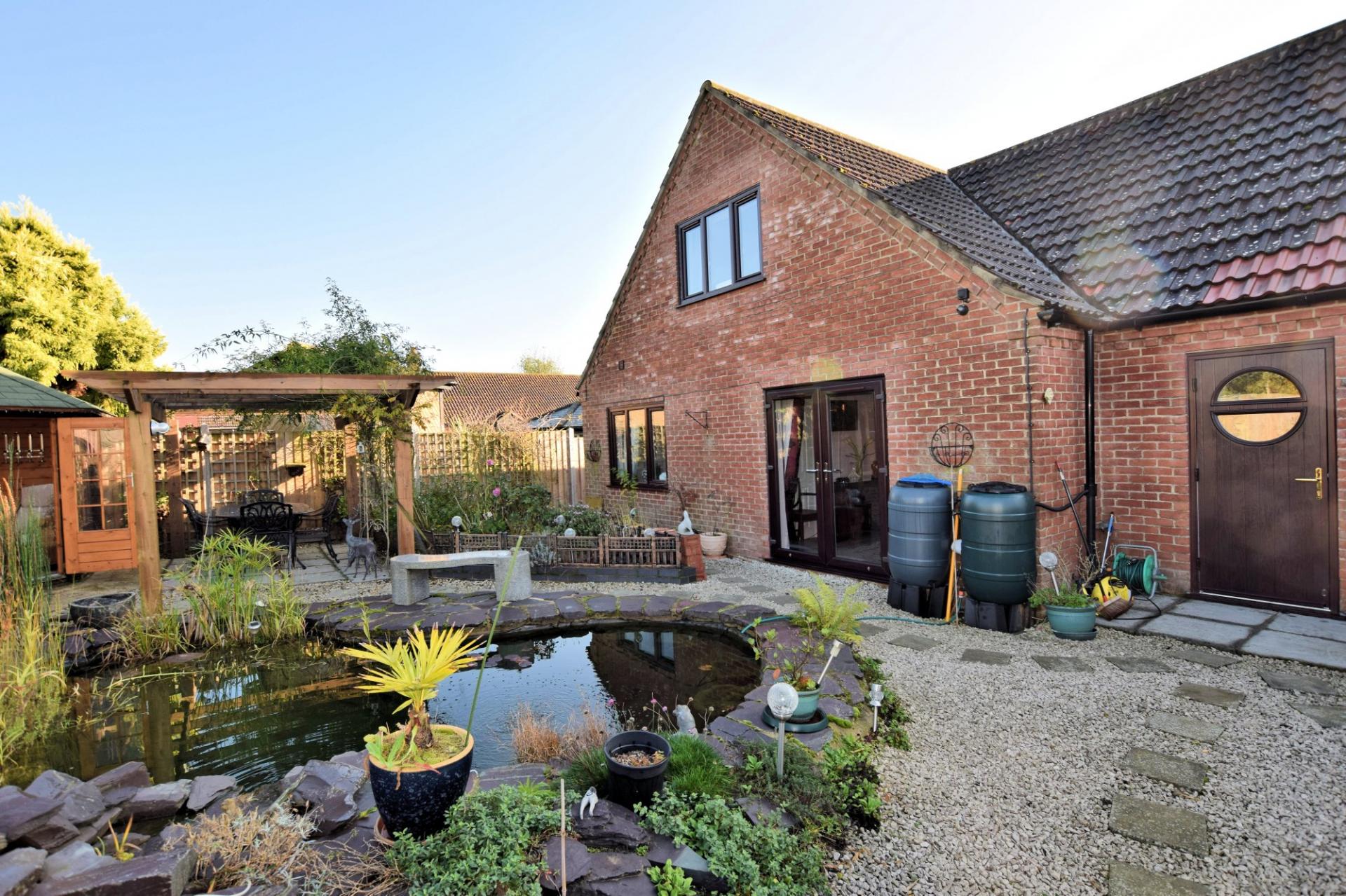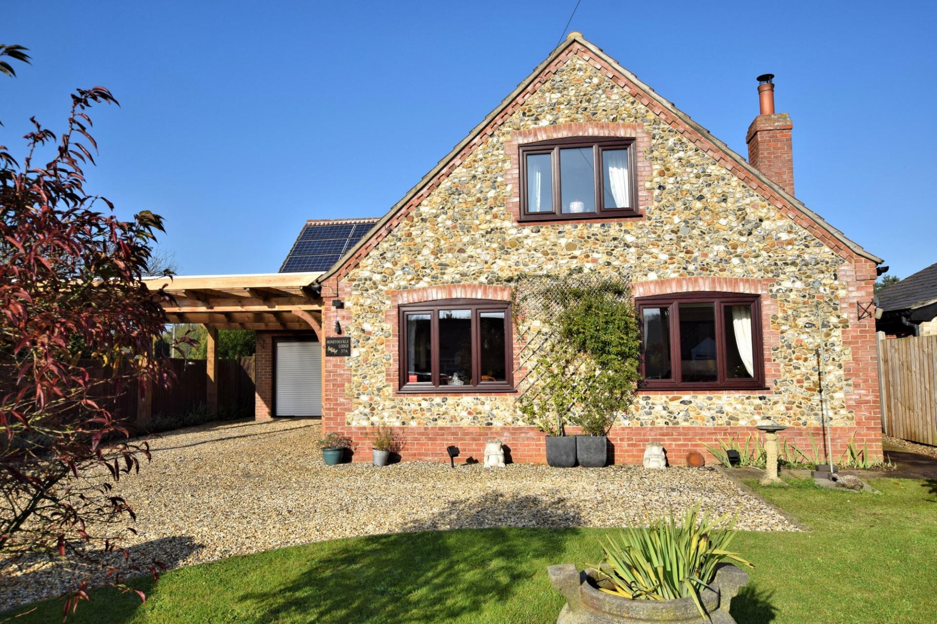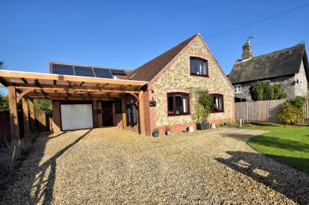 Situated in the rural village of Ickburgh is this immaculately presented four/five bedroom eco friendly chalet. This traditional home is perfect for your family with countryside views to the rear. The accommodation is spread over two floors with the ground floor comprising entrance lobby, this leads to the integral garage which currently has a utility area situated in, loft space above and provides access to the rear garden. The entrance lobby leads into the kitchen/dining room which is fully fitted to a high standard, there is an integral electric hob with built in electric oven and extractor over, integral dishwasher and integral fridge, the kitchen also houses all CCTV controls. The dining area leads to the sitting room which has a natural stone fireplace and a multi-fuel burner. There is currently two double bedrooms downstairs with built in storage, with one of the bedrooms having double doors to the rear garden and is currently used as a lounge/reception area. There is a study area which can be used as a further bedroom, should one require and a family bathroom which comprises a four piece suite. To the first floor there are a further two bedrooms, the front bedroom includes an en-suite WC and built in storage. The master bedroom benefits from an en-suite shower room and built in double wardrobes. To the rear of the property is a generous garden laid to shingle, featuring a fish pond with a granite bench, providing the perfect place to relax. The rear garden benefits from a private patio seating area and a summerhouse which has power and lighting. At the rear of the garden is a fenced off vegetable patch and further storage for garden equipment. To the front of the property there is ample off road parking with a car port situated over the driveway with an adjacent enclosed garden area laid with lawn and a variety of mature shrubs.