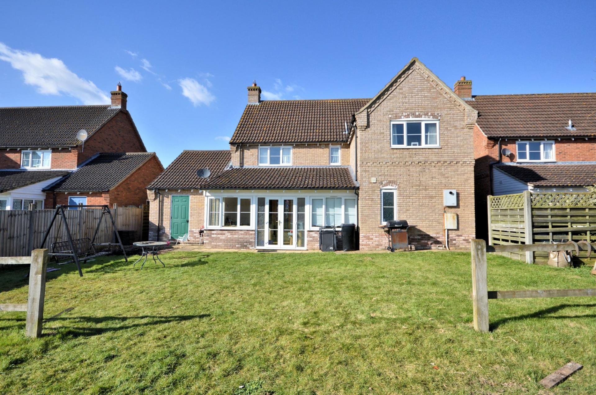 Situated in the popular Norfolk village of Ickburgh is this spacious four bedroom detached family home. The property was built by a respected local builder and offers ample living space and field views to the rear. The accommodation is spread over two floors with the ground floor comprising an entrance hall with wood flooring leading to the sitting room. The sitting room benefits from a central fireplace with log burner, double doors leading to the garden room and double doors leading to the kitchen/breakfast room with a range of wall and base level units with complementary rolled edge work surfaces, an electric hob and built-in electric oven. The kitchen offers ample space to sit and entertain. Leading from the kitchen is the utility room which again benefits from a range of wall and base level units and inset sink, with a double glazed door leading to the rear garden. The garden room provides additional living space and can be used as a separate dining room or play room. There is also a study which again can be used as additional living space and a cloakroom with a two piece suite. To the first floor there are four double bedrooms, a master with en-suite which comprises a low level WC, shower cubicle and washbasin. The family bathroom comprises a four piece suite, low level WC, washbasin, shower cubicle and panelled bath. To the rear of the property is a generous and spacious garden area which is laid to lawn, there are field views from the garden which gives a peaceful and rural outlook. A door from the rear garden leads to the garage which benefits from double doors to the front and power and lighting. To the front of the property is a spacious drive which offers ample off road parking with an adjacent garden area which is laid with lawn.
