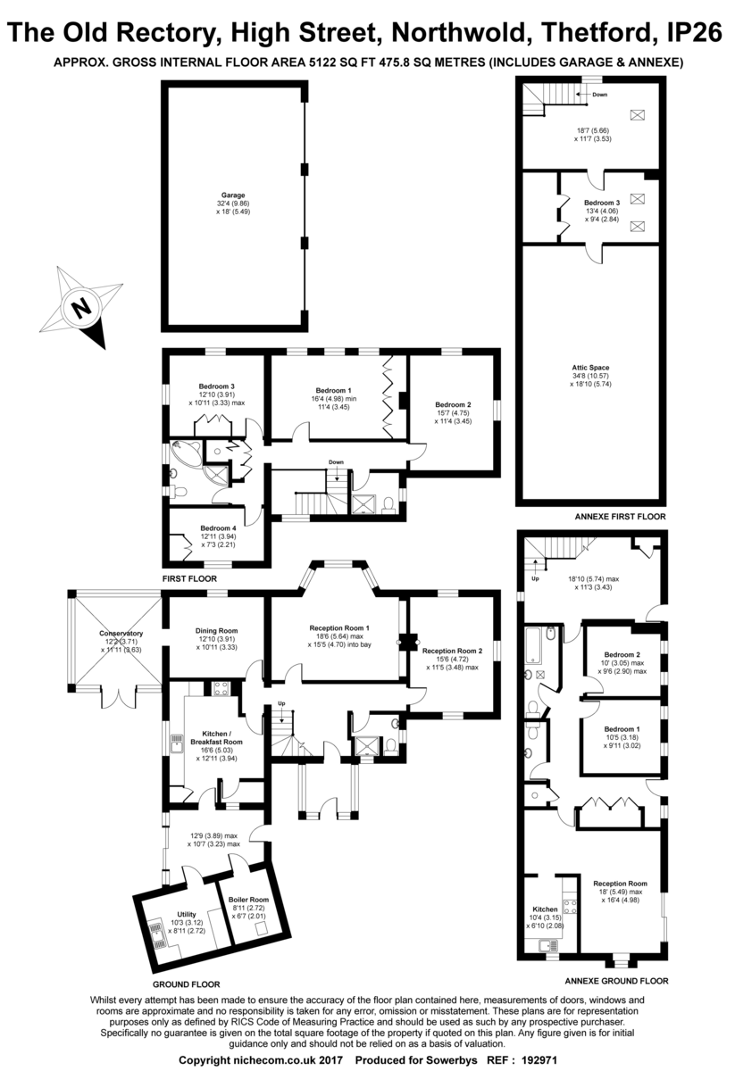 The main house offers three reception rooms off the main hall, kitchen/breakfast room with pantry, conservatory, downstairs shower room, and utility & boiler rooms off the rear lobby. The first floor has four well-proportioned bedrooms, shower room and main bathroom.