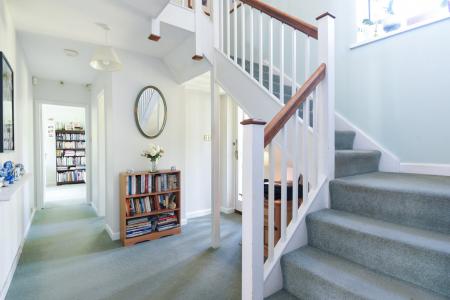 HALL Doors to all three reception rooms, the kitchen/breakfast room and shower room and carpeted staircase to first floor.
