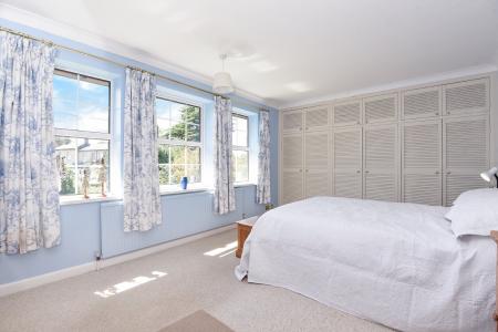 BEDROOM ONE 16' 4" min x 11' 4" (4.98m min x 3.45m) Double glazed windows to front, a full range of fitted wardrobes, radiator, fitted carpet and television point.
