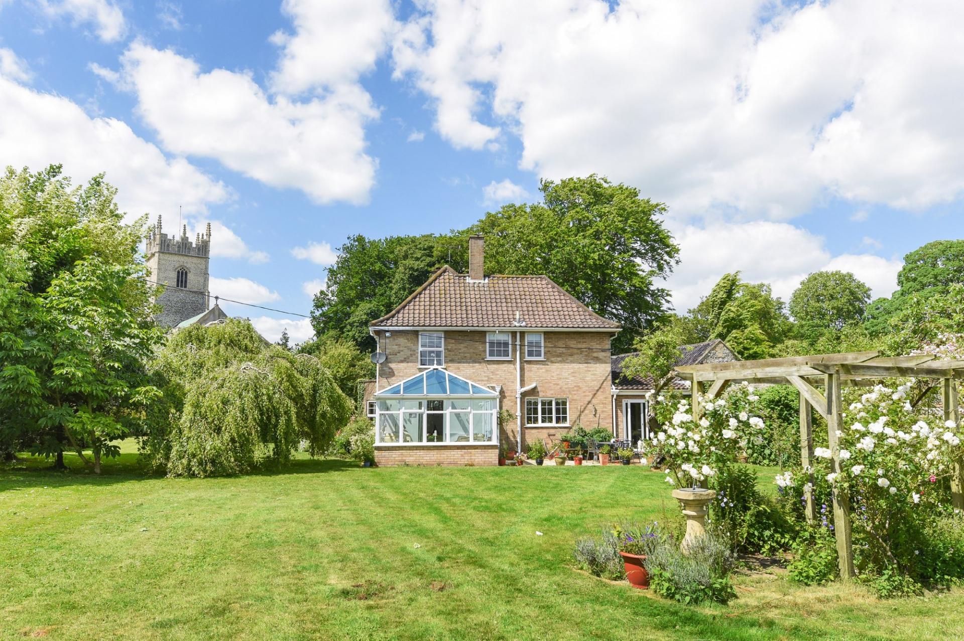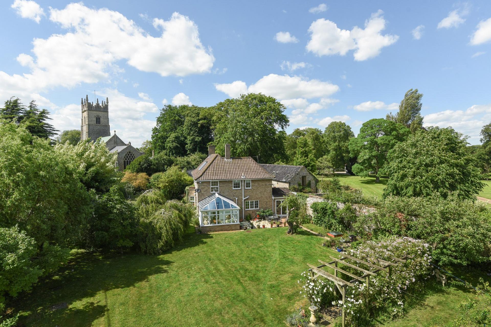 Handsome and elegant, The Old Rectory at Northwold sits beneath the gaze of Saint Andrew's Church and is a property that delivers so much more than meets the eye. First impressions reveal a lovely family home with space in abundance, whilst a detached annexe is also offered. Furthermore, the 0.7 acre plot (stms) is surrounded by a beautiful brick & flint wall which wraps around all sides. The gardens are mature and well stocked with a variety of sitting areas at different corners.