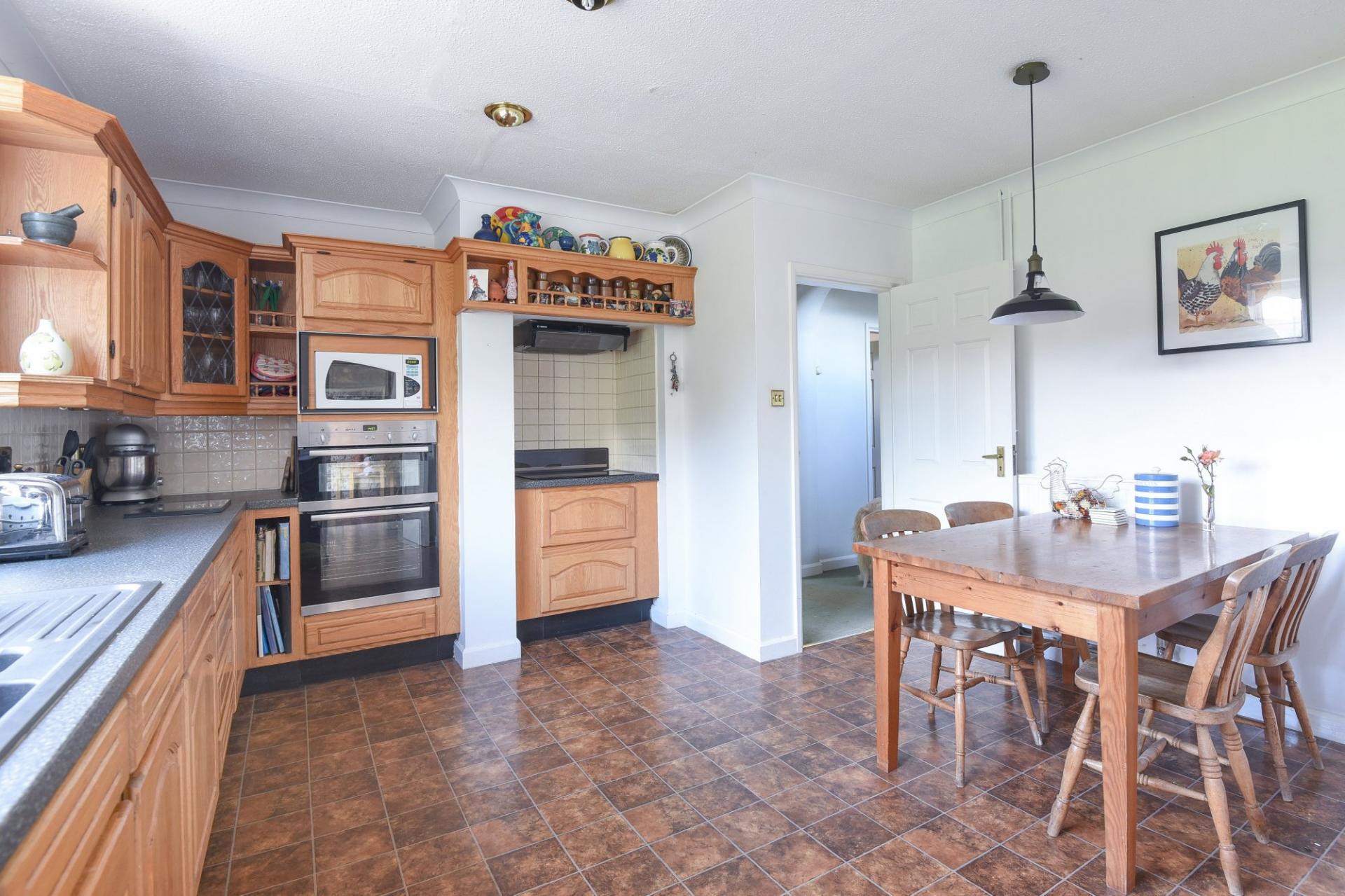 KITCHEN/BREAKFAST ROOM 16' 6" x 12' 11" (5.03m x 3.94m) Fitted with a range of solid wood wall and base units, Bosch induction hob with extractor fan above, NEFF double electric oven and integrated Zanussi dishwasher. 1.5 bowl composite sink with mixer tap, door to rear lobby and door to the fully shelved walk-in pantry.