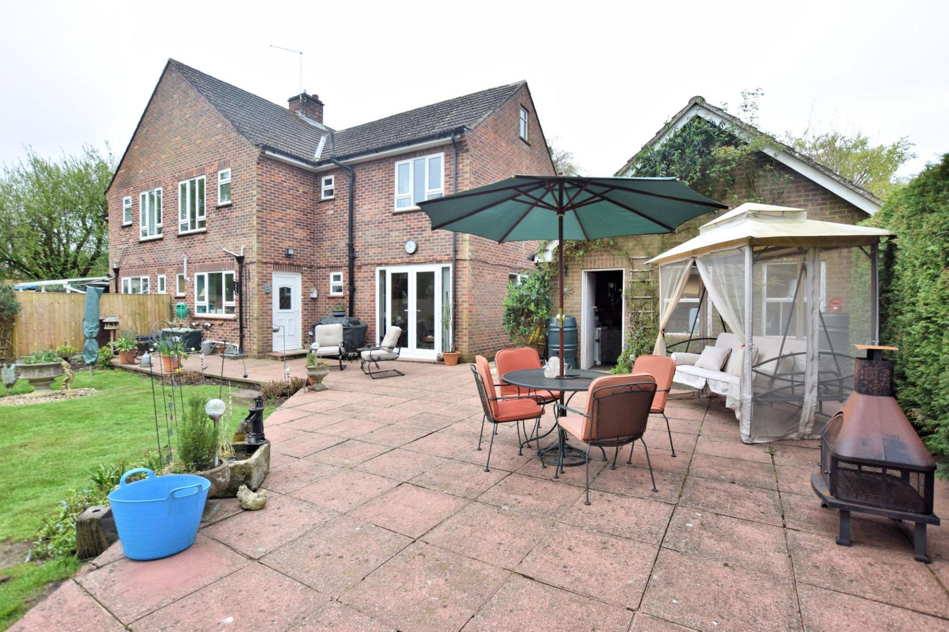 Situated in the popular village of Saham Toney is this spacious four bedroom semi-detached house. The property is the perfect opportunity for the prospective purchaser to acquire a traditional and spacious family home which has a generous rear garden with field views. The accommodation comprises an entrance hall which has the stairs to the first floor landing and access to the sitting room which has a central log burner and double aspect windows. The kitchen has a fitted "Blaines" kitchen comprising a range of wall and base level units with an inset gas hob and sink, there is a built-in eye level electric Neff slide and hide oven, built-in fridge freezer and dishwasher. In addition there is a dining room which has double doors leading out to the rear terrace and a cloakroom with a two piece suite. To the first floor there are three double bedrooms all with built-in storage and a further fourth single bedroom with built-in storage. There is a cloakroom upstairs which has a low level WC and there is a shower room with a walk-in shower and washbasin. To the rear of the property there is a patio terrace which is perfect for entertaining and al-fresco dining and a door to the double garage which has power and lighting. The rear garden is laid mainly to lawn with a variety of mature shrubs and trees throughout. There is a summer house which is brick built and could be used as a studio or office. To the front of the property is a hard standing driveway which gives ample off road parking with an adjacent garden area laid with lawn.