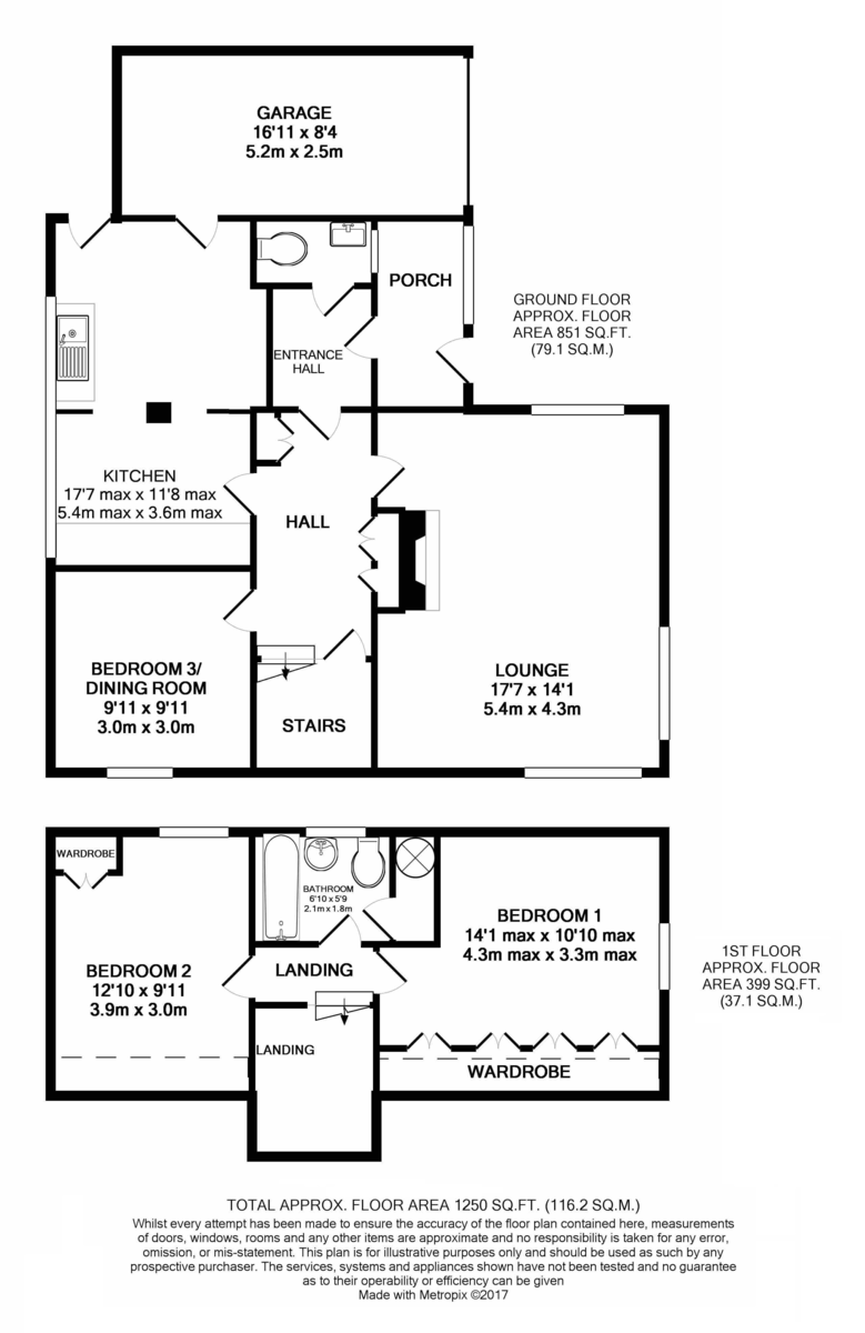 KITCHEN/BREAKFAST ROOM 17' 7" x 11' 8" (5.36m x 3.56m) max. measurements Fitted with a range of base and eye level units with roll top work surfaces, electric cooker point, free-standing sink unit with stainless steel single drainer sink with mixer tap and plumbing for washing machine. Double glazed window to side, double glazed door to side, door to integral garage and two wall mounted radiators.