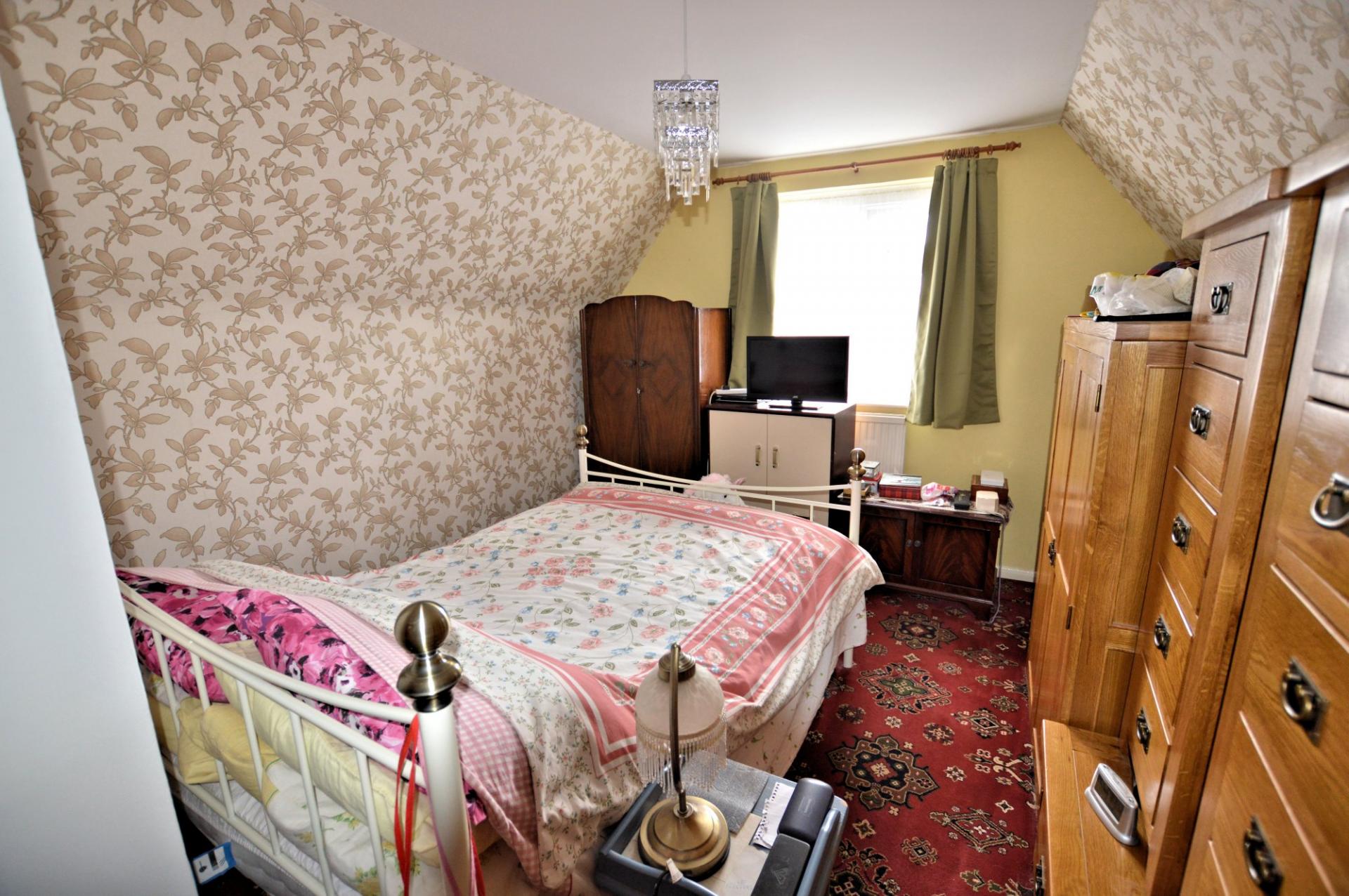 BEDROOM TWO 12' 10" x 9' 11" (3.91m x 3.02m) Double glazed window to side, wall mounted radiator and built in storage cupboard.