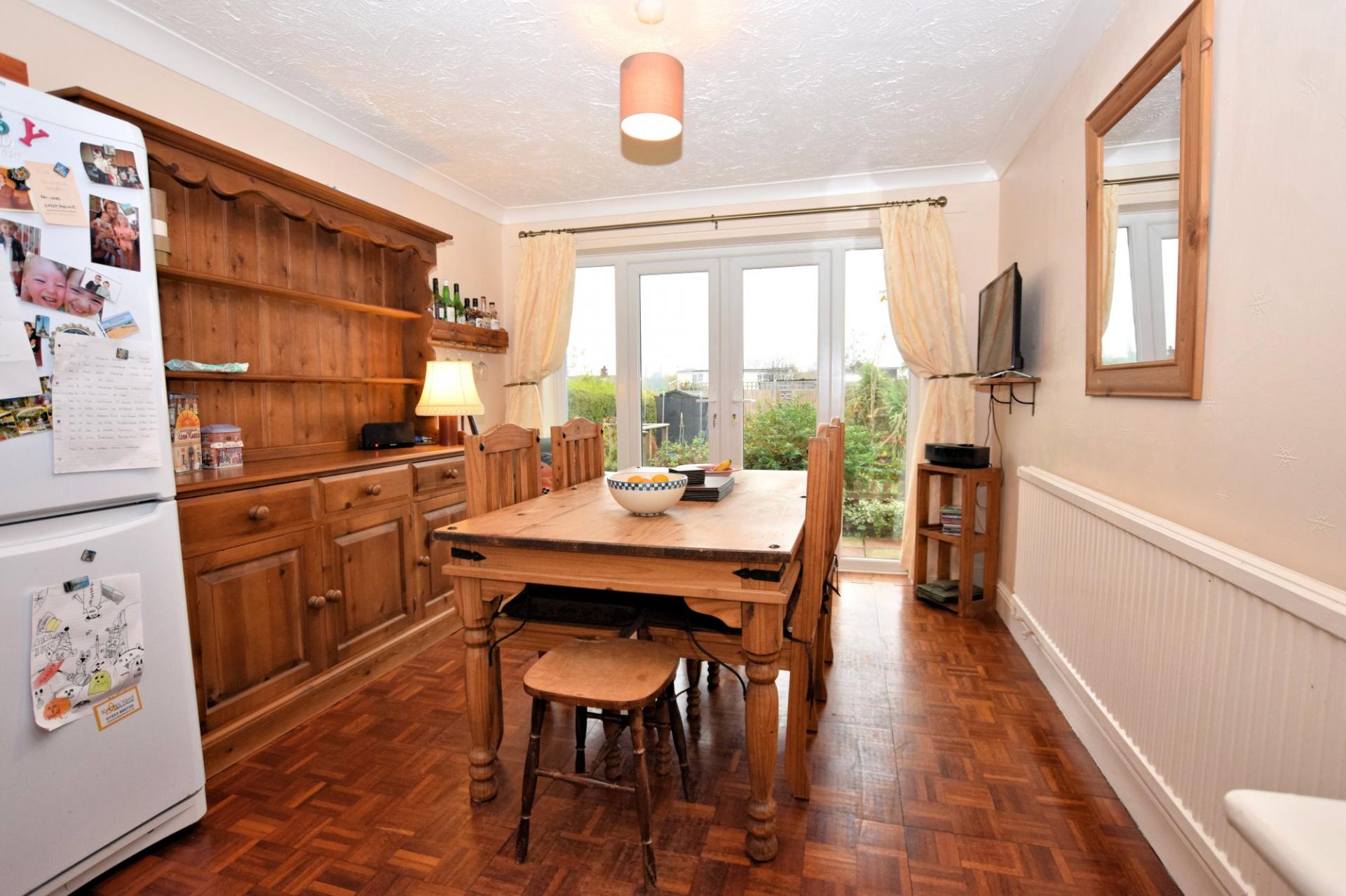 Guide Price £200,000 - £210,000. Situated in the popular market town of Watton is this spacious three bedroom detached chalet. The property is perfectly positioned close to amenities and the high street. The accommodation is spread over two floors with the ground floor comprising entrance hall, open-plan kitchen/dining room and sitting room which includes a central decorative fireplace and double doors that lead to the rear garden. An archway leads from the kitchen to the dining area which has parquet flooring and double doors that also provide access to the decked garden area. There is a cloakroom downstairs which has a low-level WC and hand wash basin. The first floor has three bedrooms, all of which benefit from built in storage and a family bathroom with a fitted four piece suite. To the rear of the property is a generous garden, laid to lawn with a variety of mature flower and shrub borders. A lovely feature is the ornamental pond and throughout the garden you will find multiple seating areas ‐ perfect for relaxing and enjoying the afternoon and evening sun. To the front of the property you will find ample off road parking, a car port and access to the single garage. This property is perfect If you are looking to upsize or to find your family home.