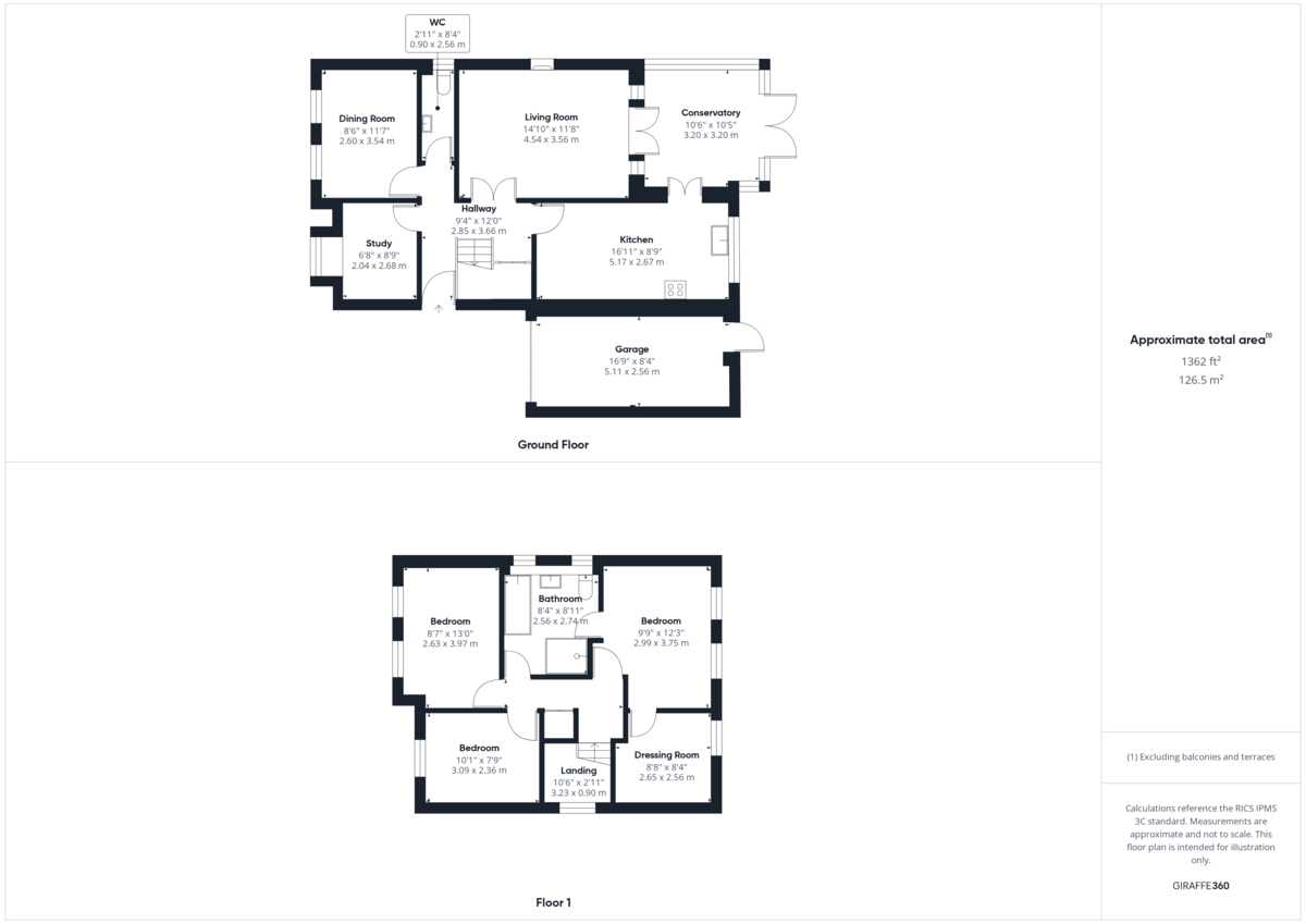 - Three bedrooms plus dressing room