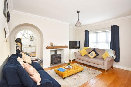 With dining area and glazed doors leading to the garden. The kitchen comprises a range of stylish fitted units with integrated dishwasher and space for appliances. Tiled flooring.