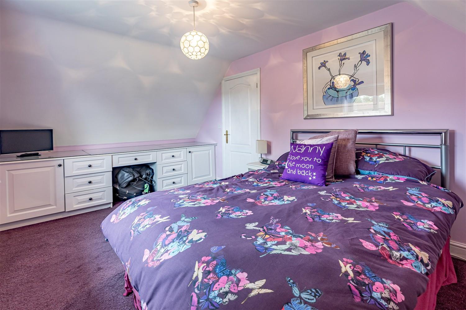 On the first floor, you will find four generously proportioned bedrooms, a four-piece family bathroom and a master suite featuring its own en-suite shower room and a range of wardrobes. The exterior of this remarkable property showcases a landscaped rear garden that encircles the home, providing a serene retreat that backs onto picturesque arable farmland. With a double detached garage and ample off-street parking, this residence offers both beauty and practicality, making it a perfect family haven.