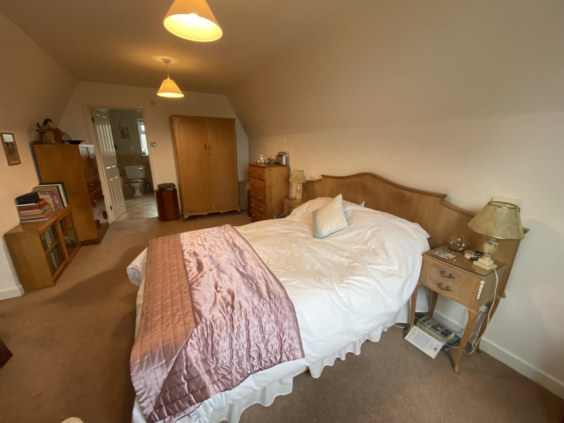 MASTER SUITE 18' 2" x 10' 5" (5.55m x 3.19m) Master Bedroom: UPVC window to rear overlooking garden and countryside beyond, radiator, 2 x pendant light fitments, tv point, door to