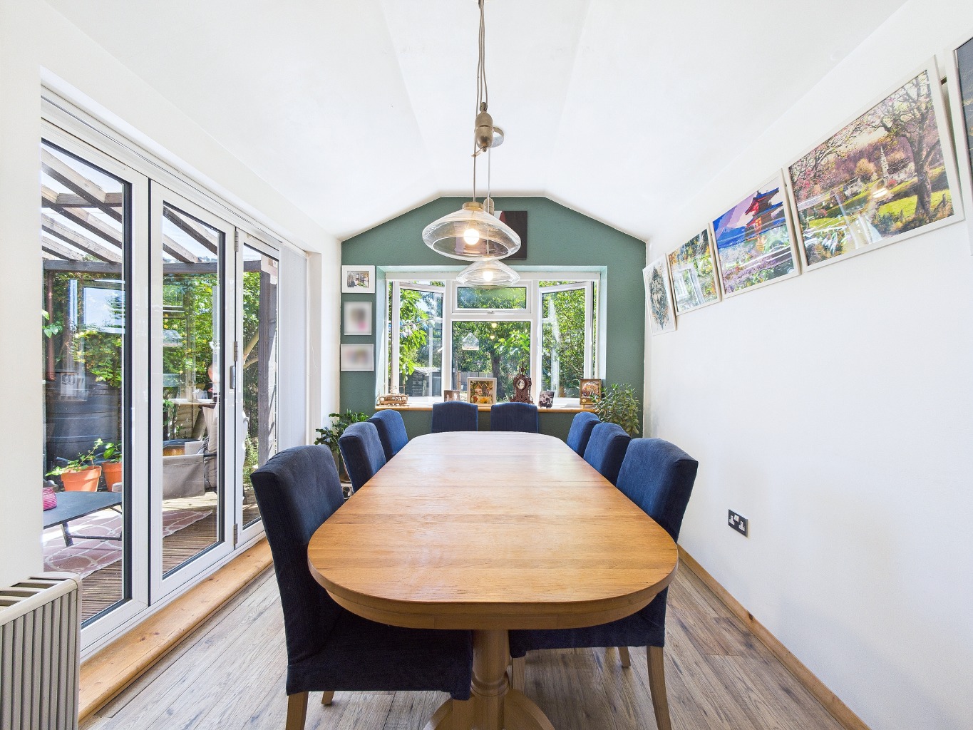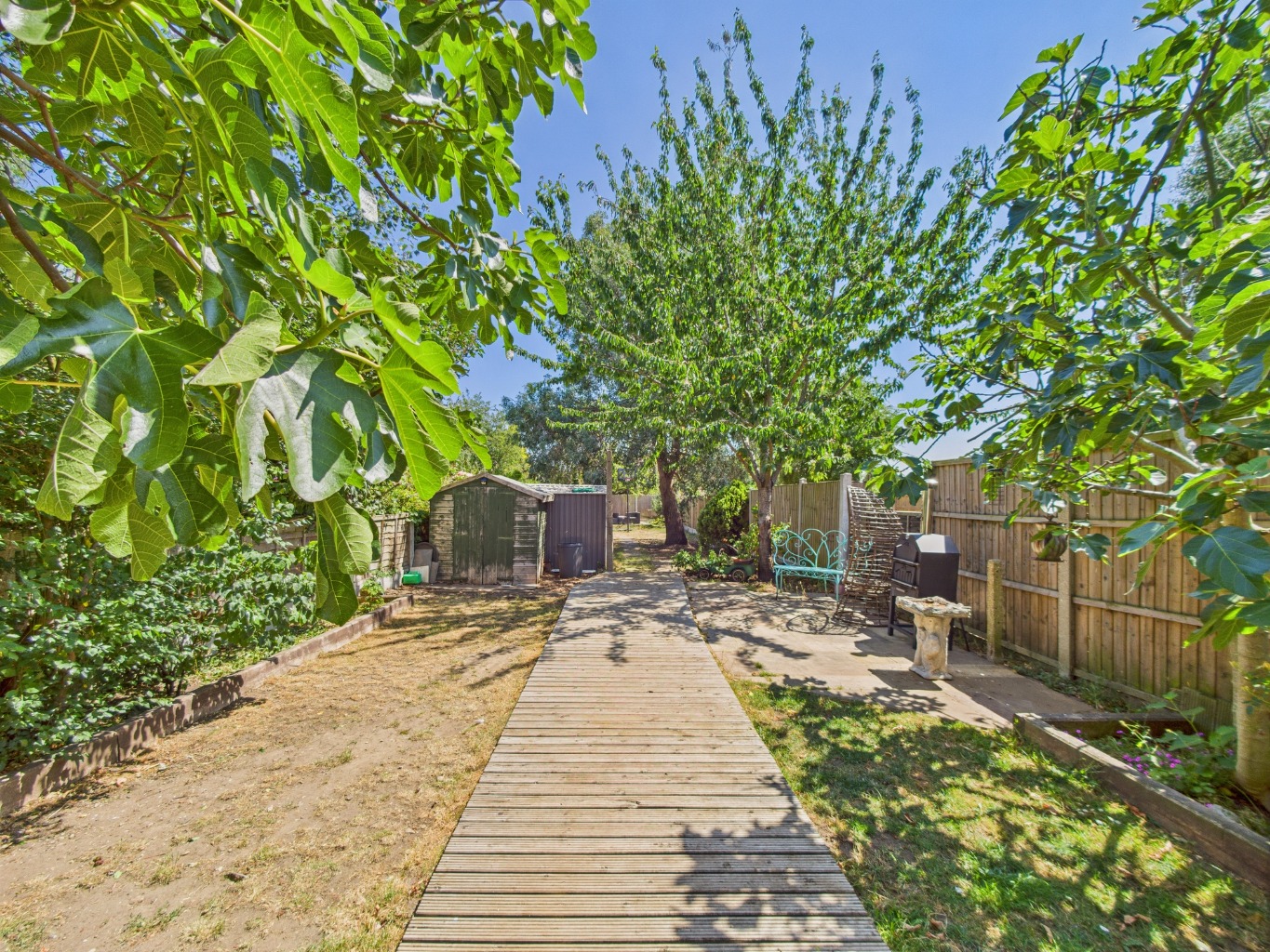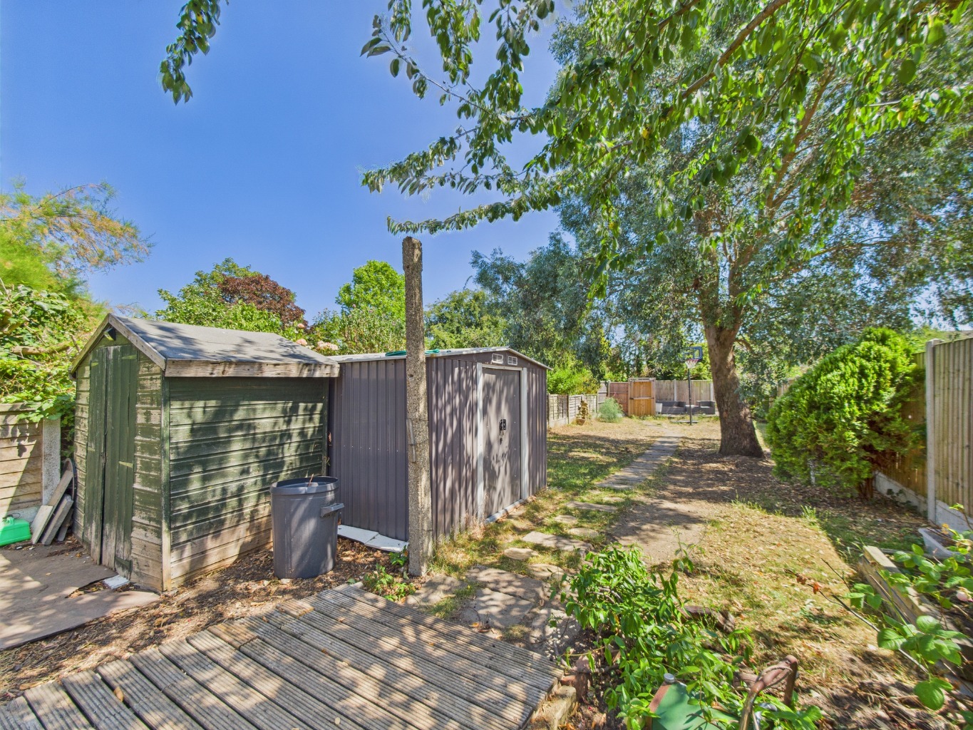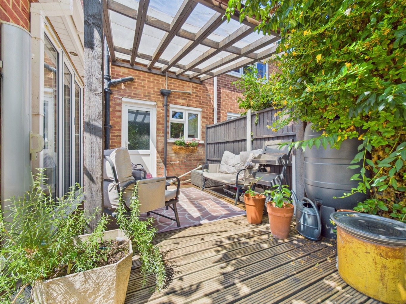 - (150FT +) REAR GARDEN WITH STORAGE AND SEATING AREAS AND FRUIT TREES
