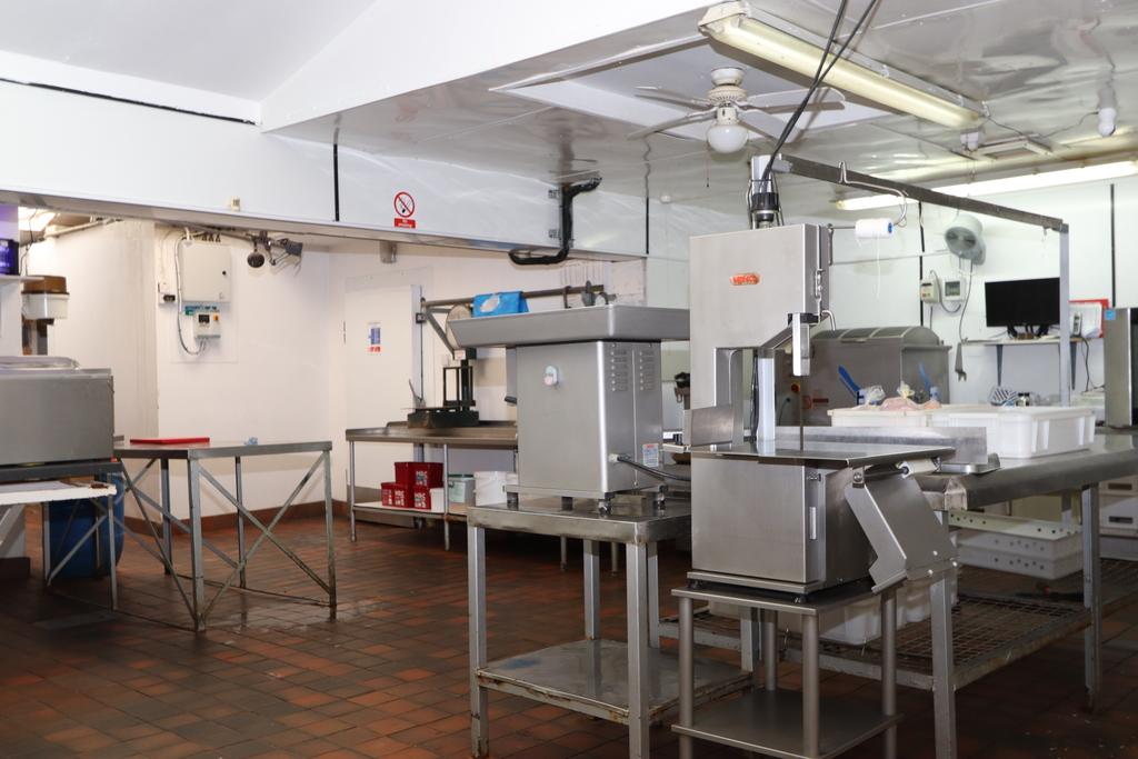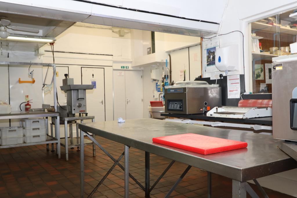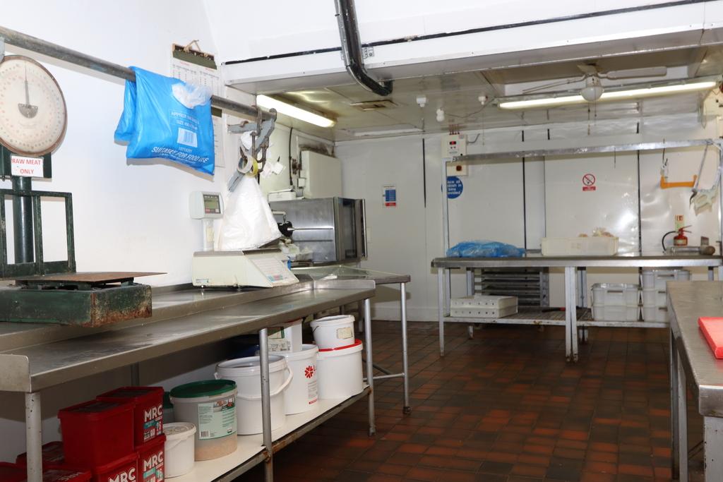 Double swing doors lead in from the shop frontage. This large room has a large stainless-steel sink with drainer and various stainless steel work benches. There are two store rooms off the working area as well as a walk-in fridge and a walk-in freezer. There is also both gents and ladies toilets. The flooring is laid to tiles and the ceiling is fitted with strip lights. There are also two velux windows to the ceiling and double doors lead to the side of the building. A door leads into the integral garage.