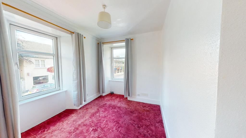 This room is well presented. The walls have been painted white, there is fitted carpet and a pendant light fitting. A window with curtains can be found to the front elevation.