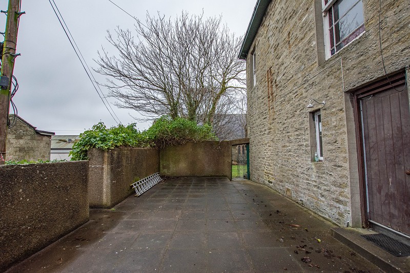 Externally, the property enjoys a generous garden to the side, with mature trees, hedging and a paved courtyard, all enclosed by a stone wall and iron fencing.
