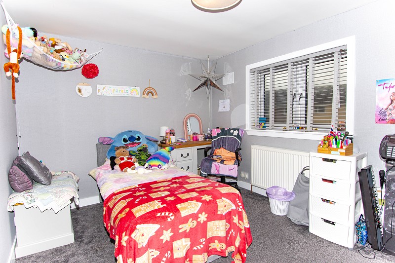 This well-presented room has been wall papered and benefits from a grey fitted carpet. There is a window, fitted with blinds, which faces the rear elevation. The room benefits from double sockets, a flush light fitting and a central heating radiator.