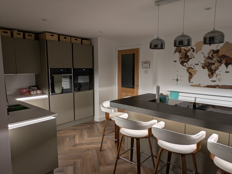 The stunning kitchen/dining room has been extended to provide family living at its best. There is an excellent range of base and wall units along with quartz worktops. There is an island which provides seating and incorporates an induction hob, with a built-in extractor. Below the island is built in lighting and there are also built in cupboards. Lighting has also been built in under the worktops. A lovely feature within this room is the drop-down light fittings. Oak LTV tiles have been laid to the floor and there are dual aspect windows with fitted roller blinds as well as two central heating radiators. Double glazed doors give access to the rear garden and an opening leads to the beautiful utility room. A further door gives access to the front garden. Space can be found for a fridge freezer and also a sofa.