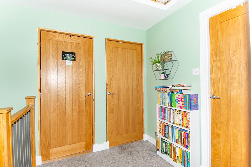 A carpeted stairwell leads to the first-floor landing where there is a feature drop downlight fitting and a window to the front elevation. Oak doors give access to four double bedrooms and the stylish bathroom. A hatch gives access to the loft void which is mainly floored throughout.