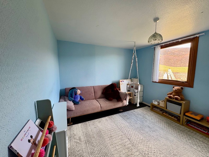 Located to the front of this wonderful home is this spacious fourth bedroom with a window to the front elevation which boasts views over River Naver. The walls have been painted white and a carpet has been laid to the floor. There is a central heating radiator, double sockets and a pendant light fitting.