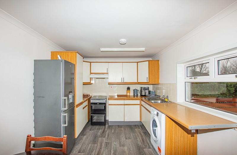 The kitchen is a bright room, with neutrally painted walls and a large window which faces the front elevation and a central heating radiator. There are cream base and wall units with wooden worktops, a stainless-steel sink with drainer and an extractor cooker hood. Space can be found for a fridge-freezer and a washing machine. There is also ample space for a dining table and chairs. Vinyl has been laid to the floor