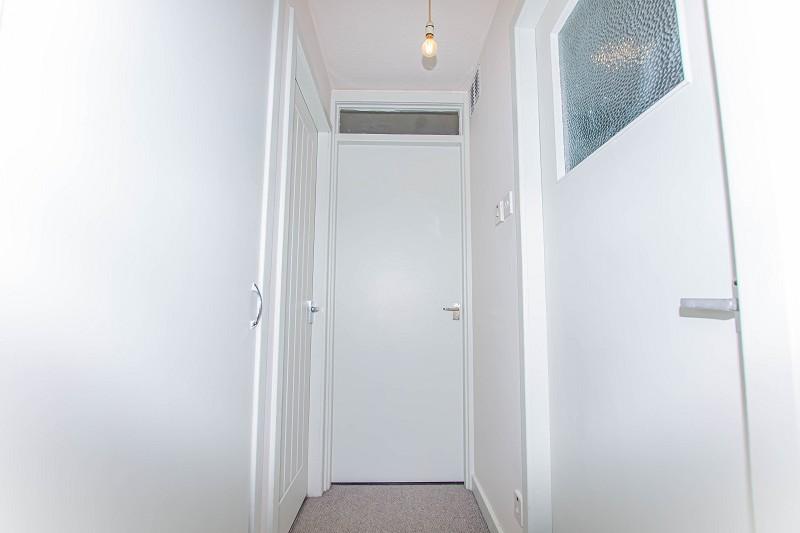 This lovely room has a floor to ceiling window to the front elevation which allows plenty of natural light to flood through. The living room walls have been painted white and a beige carpet has been laid to the floor. There is a central heating radiator, an industrial style feature light fitting and also a smoke alarm. A door leads through to the second hallway.