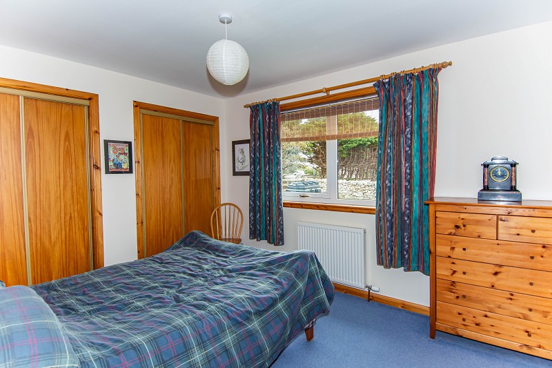 This neutrally decorated room benefits from built in wardrobes with hanging and shelf space. A carpet has been laid to the floor. There is a pendant light fitting, double sockets and phone point. A window fitted with a raffia blind faces the front elevation.