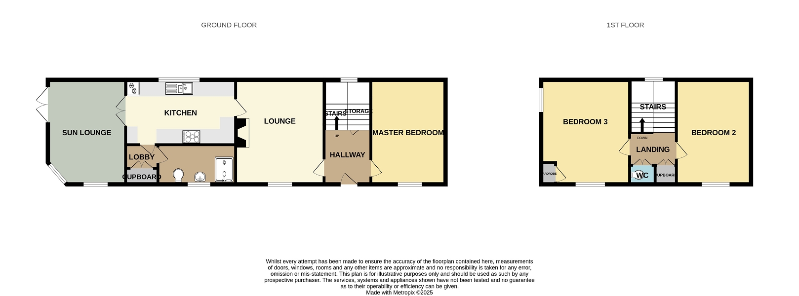 The stairs are carpeted with a window facing to the rear on the turn of the landing, The landing benefits from two cupboards, one has been shelved and the other houses a handy upstairs WC. The landing has a natural wood floor, a pendant light fitting and access hatch to the loft. Doors open into two bedrooms.