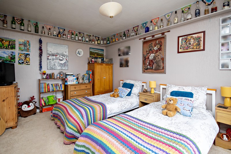 This lovely spacious and bright room has windows facing to both the front and side and benefits from a built-in wardrobe. The floor is carpeted and there is a radiator and a pendant light fitting.