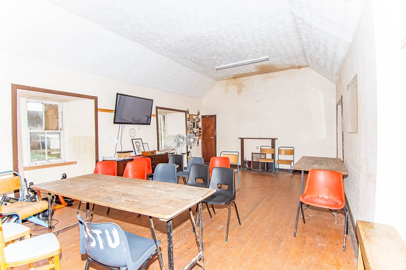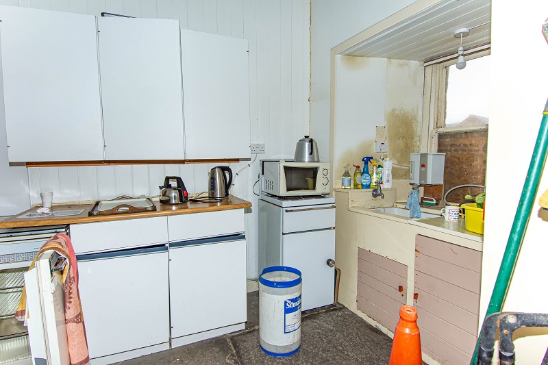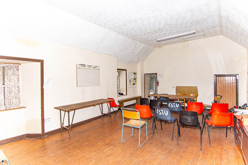 Located to the front of this dwelling, this room has magnolia painted walls, power points as well as florescent lighting. A Caithness flagstone floor add character to this room as does the sash and case window. Steps give access to the main function room.