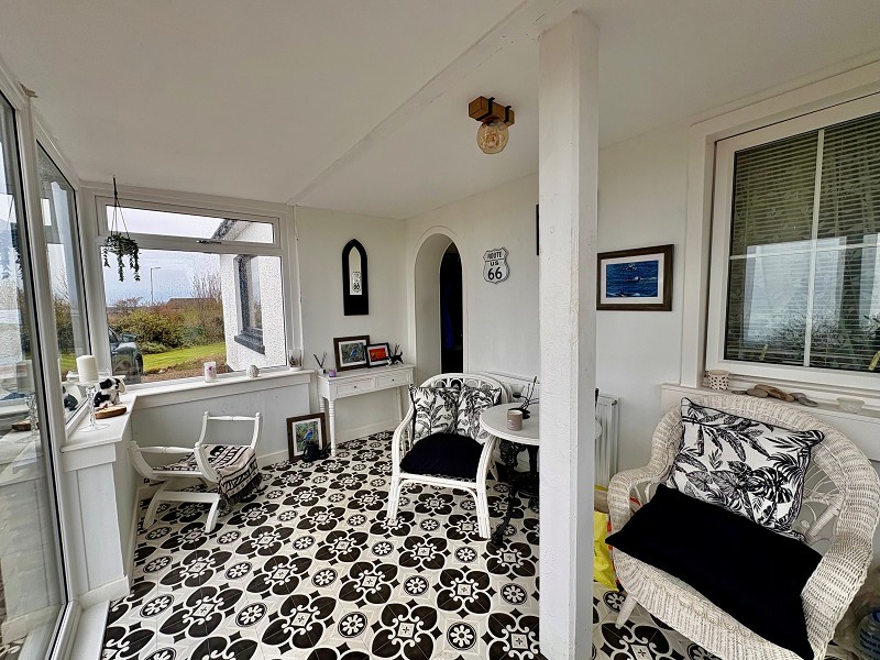 Ideally located to take in the view, this room boasts triple aspect windows and vinyl flooring. There is a central heating radiator and an industrial ceiling light. A composite door leads outside; there is a feature archway and another door gives access to the lounge.