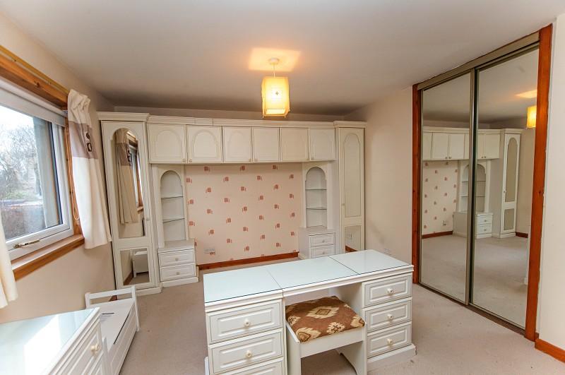 This splendid room has a featured papered chimney breast wall and an attractive stone fireplace with an insert electric fire, and Caithness flagstone hearth. There are dual aspect windows with curtains, and a fitted carpet. This spacious room benefits from wall and ceiling lights, coving, as well as a smoke alarm and a ceiling rose. There is a central heating radiator, an aerial point and electrical sockets. This is a light and bright reception room.