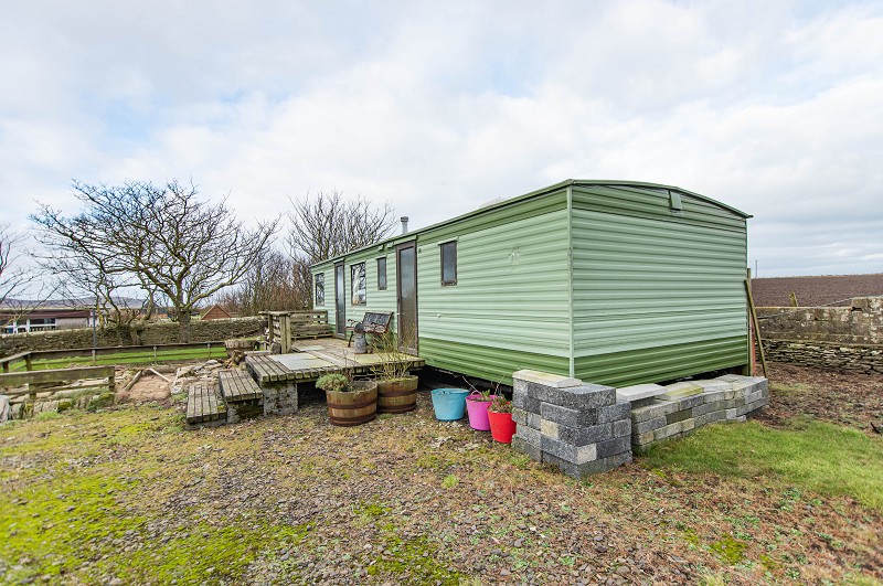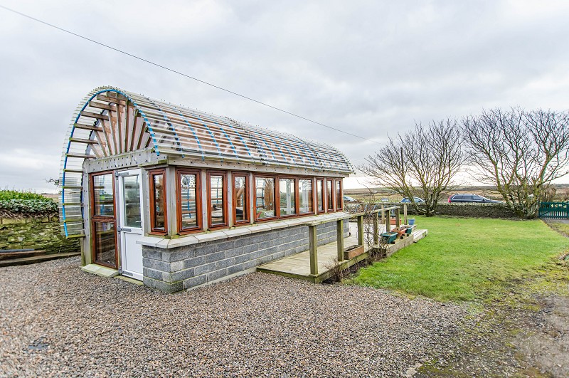 This fabulous addition to the home has triple aspect windows with UPVC doors to the front and rear. The double front doors give access to the decking area of the well-maintained front garden, which is mainly laid to lawn with mature trees and raised vegetable borders. The property is enclosed with a dry-stone dyke wall and has a large driveway to the front and a further drive goes to the rear. The rear garden is laid to lawn with a gravel drive and a storage shed. The rear garden is secluded and benefits from mature trees.