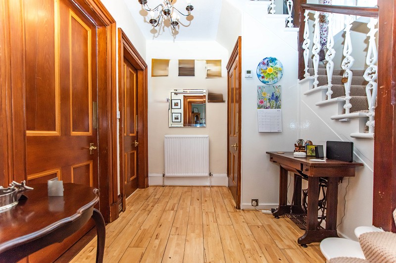 Accessed via a hardwood door the vestibule is bright and inviting, with wooden panelling and ceramic floor tiles. There is a pendant light fitting and a window which faces the front elevation. A door gives access to the inner hall.