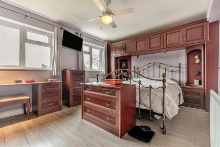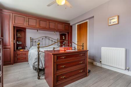 Master Bedroom - 4.95m x 3.18m (16'3 x 10'5) - Range of fitted bedroom furniture to include wardrobe, dressing table and drawers, two double radiators, central fan and light, two rear aspect west facing windows, dressing room with fitted double wardrobe, full height mirror faced sliding doors, hanging rail and shelving.