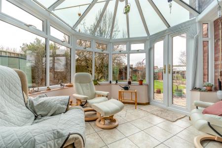 Conservatory - 3.43m x 3.35m (11'3 x 11'0) - Tiled flooring, centre fan and light, private outlook over the gardens, fully glazed doors through to the rear.